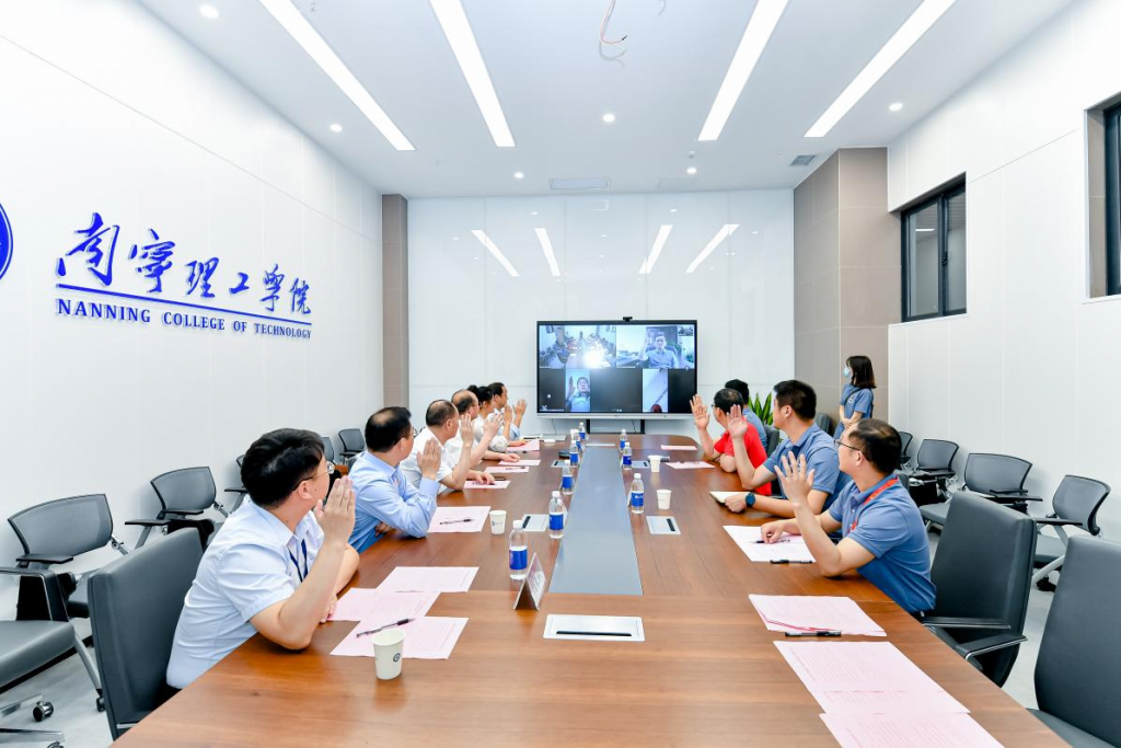 根据大会流程,工作人员现场宣读《南宁理工学院家校联盟委员会章程(2022年)》、《南宁理工学院第一届家校联盟委员会委员名单》以及《南宁理工学院第一届家校联盟委员会常务机构人员名单》。大会全体举手表示一致通过。随后,党委书记金飞、董事长尹少华、校长王金叶分别为第一届家校联盟委员会委员、常务机构人员、助学导师代表颁发了聘书。学校校长王金叶与委员会秘书长李奋共同为家校联盟委员会进行了揭牌。