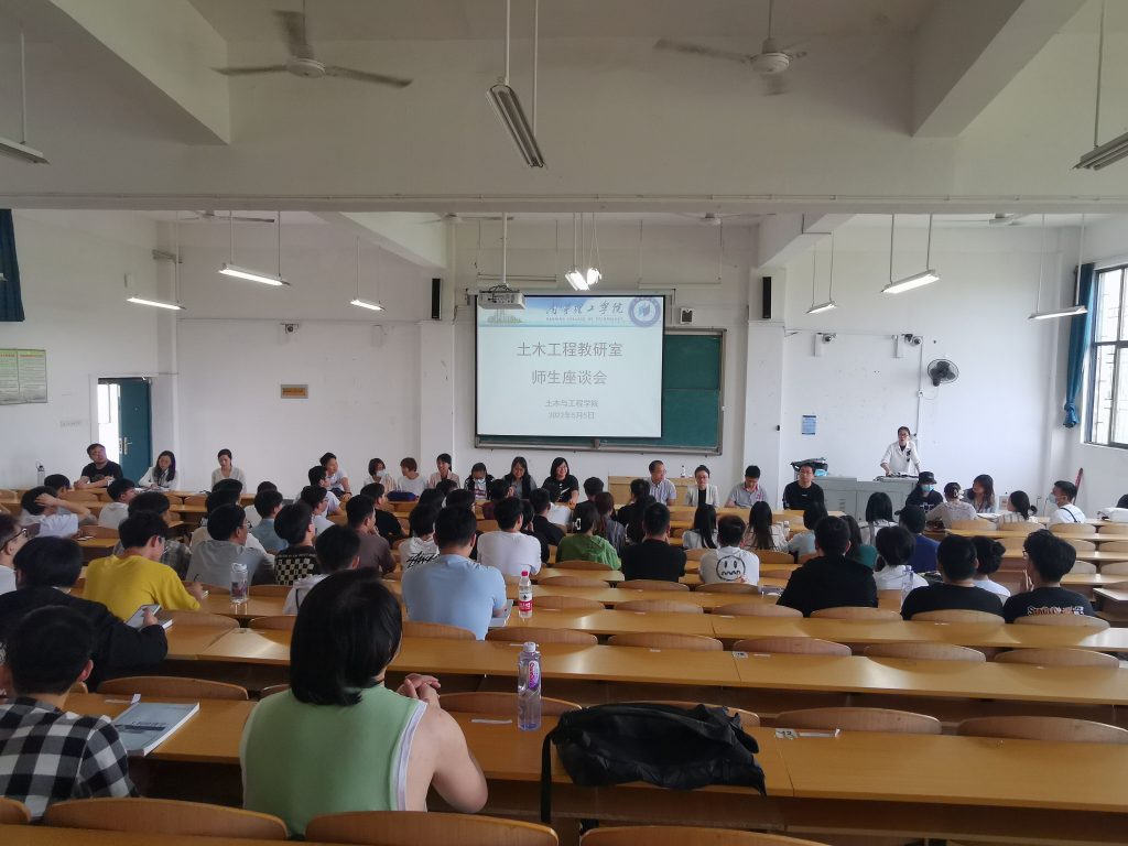 为全面了解和掌握土木工程专业学生思想、学习、生活等方面的情况,以及进一步改善学习环境和提高管理水平,为学生提供一个健康、快乐、高效的学习环境奠定良好的基础。2022年5月5日中午,土木工程教研室于4202教室召开主题为“构筑沟通交流桥梁,加强师生联系”的师生座谈会。17名专任教师及5位带班辅导员出席座谈会,并与来自工民建、交通土建、岩土工程三个方向的70多位学生代表进行现场交流。