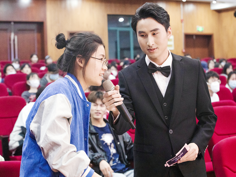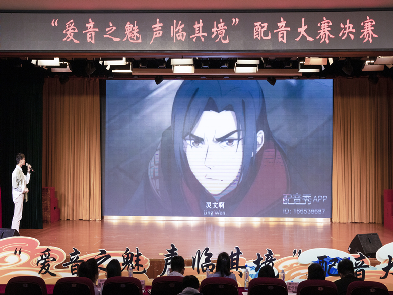 经过预赛的选拔,共有11名选手杀出重围进入决赛。参赛选手所选取的配音片段包罗万象,既有《天官赐福》、《大鱼海棠》这样的经典动漫、也有《绿皮书》这样的外国影视经典、还有红极一时的《冰雪奇缘》等。其中中文一等奖获得者,选手李宇涵带来的《白蛇缘起》宝青坊坊主的配音更是赢来满堂彩,生动的画面唤起了台下同学们对经典影视作品的讨论。选手们展示出了各自独特的表演效果,充分发挥自己的才艺特长,使自己所表演的角色展现出独具一格的风范,给我们带来了精彩绝伦的视听盛宴。
