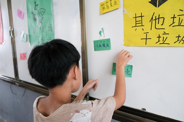 同学们进行垃圾卡片分类