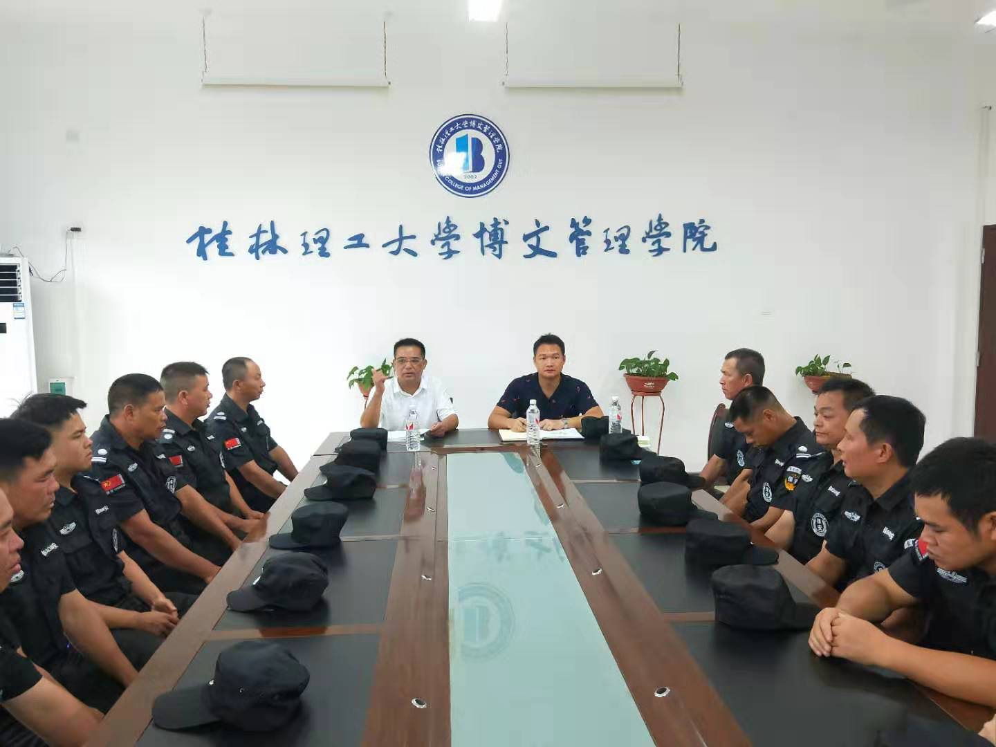 培训会上,刘绍鸿大队长首先组织大家学习了各岗位的工作职责、公司管理规定和奖惩办法,明确了需要注意的事项,并强调了暑假期间学校的保卫工作。主任从“要熟悉岗位职责、要掌握基本技能、要有一定的吃苦精神、要有强烈的纪律意识、要时刻注意自身形象、要树立以校为家的观念”六个方面提出了具体的要求。培训会结束后,刘绍鸿大队长还组织了队列动作、安保器材的使用、灭火操作等方面的培训,对队员快速处理突发事件进行了检验考核。