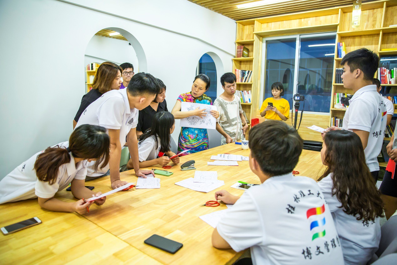 剪纸是中华文化发展演变历程中一种古老而富有民族情愫的民间艺术,犹如山野之花,散发着浓郁的乡土气息。7月10日,“柘荣剪纸”杰出传承人郑平芳老师来到柘荣县双城镇政府书屋,教授实践队员们基础的柘荣剪纸技巧。郑老师说:“剪纸分为阴剪和阳剪,只有将两者结合起来,作品才能有活力。”郑老师还强调:“剪纸是没有束缚的,只要有了自己的想法,每一个剪纸作品都是优秀的。”实践队员在郑老师的指导下,也亲手体验了剪纸的乐趣,深刻地体会到了剪纸艺术的魅力。