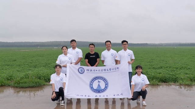 团队成员在农耕地前合影留念