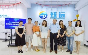 (王校长带领考察团在臻远电子商务有限公司合影)