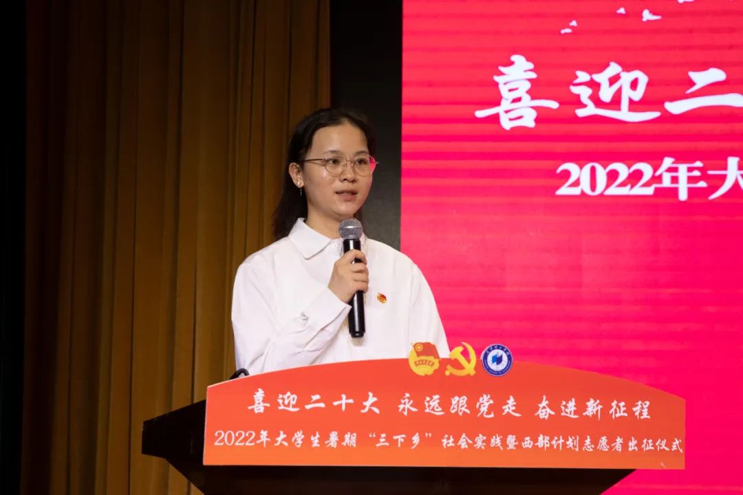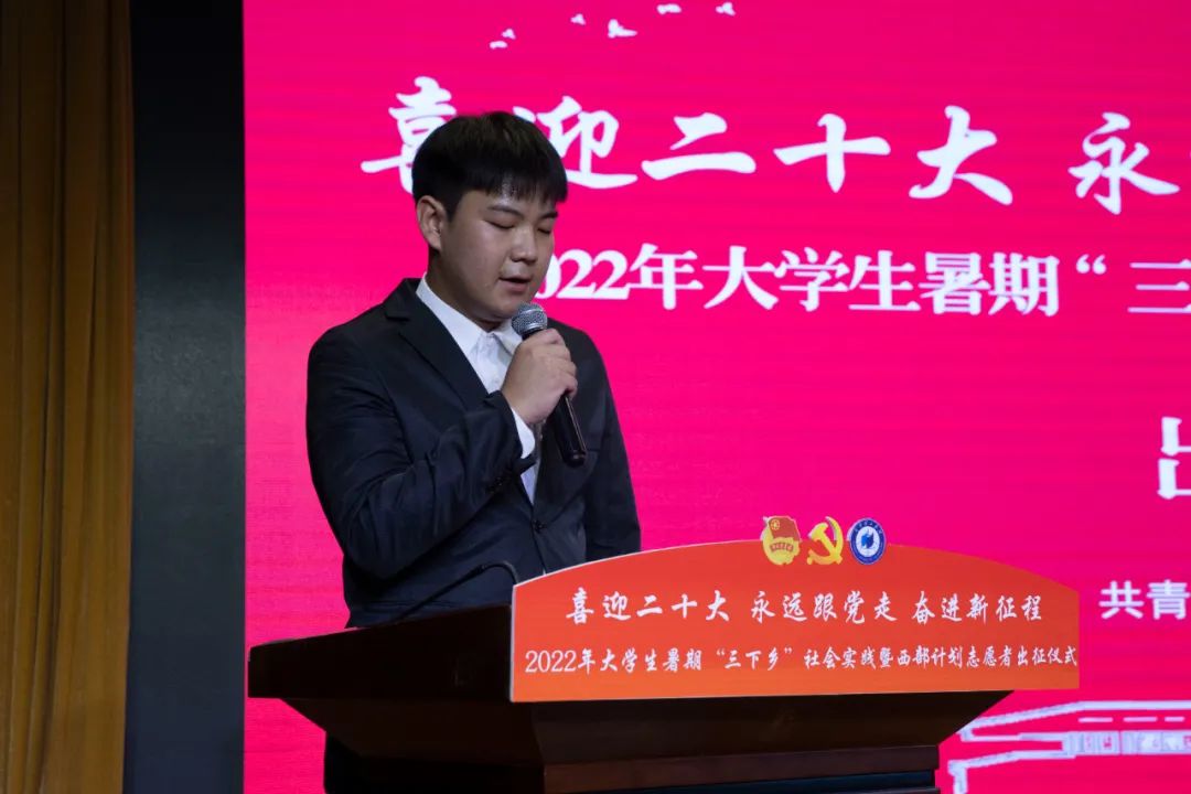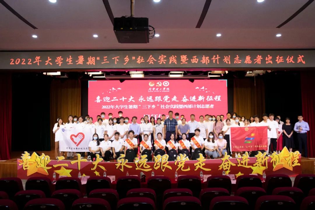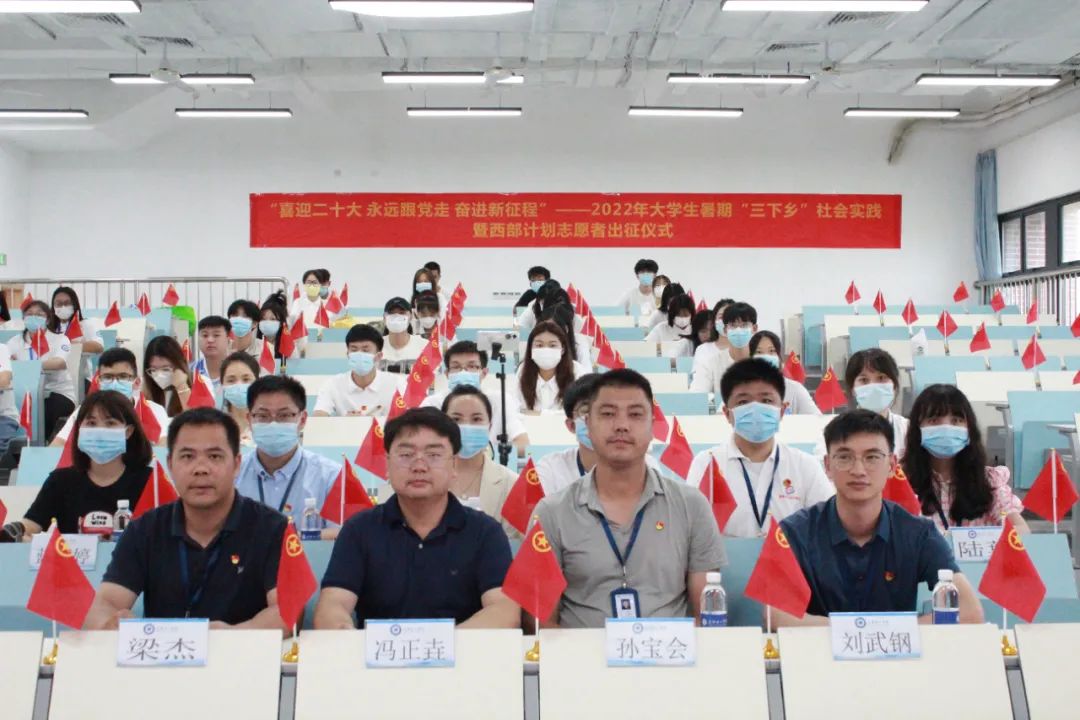 我校举办“喜迎二十大 永远跟党走 奋进新征程”——2022年大学生暑期“三下乡”社会实践暨西部计划志愿者出征仪式