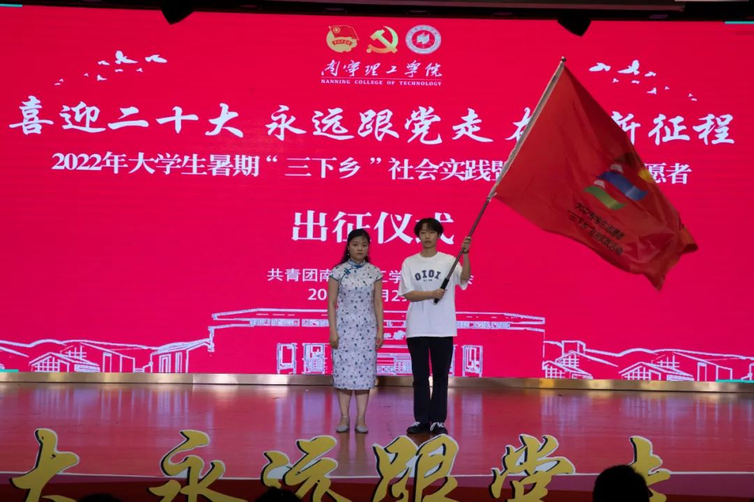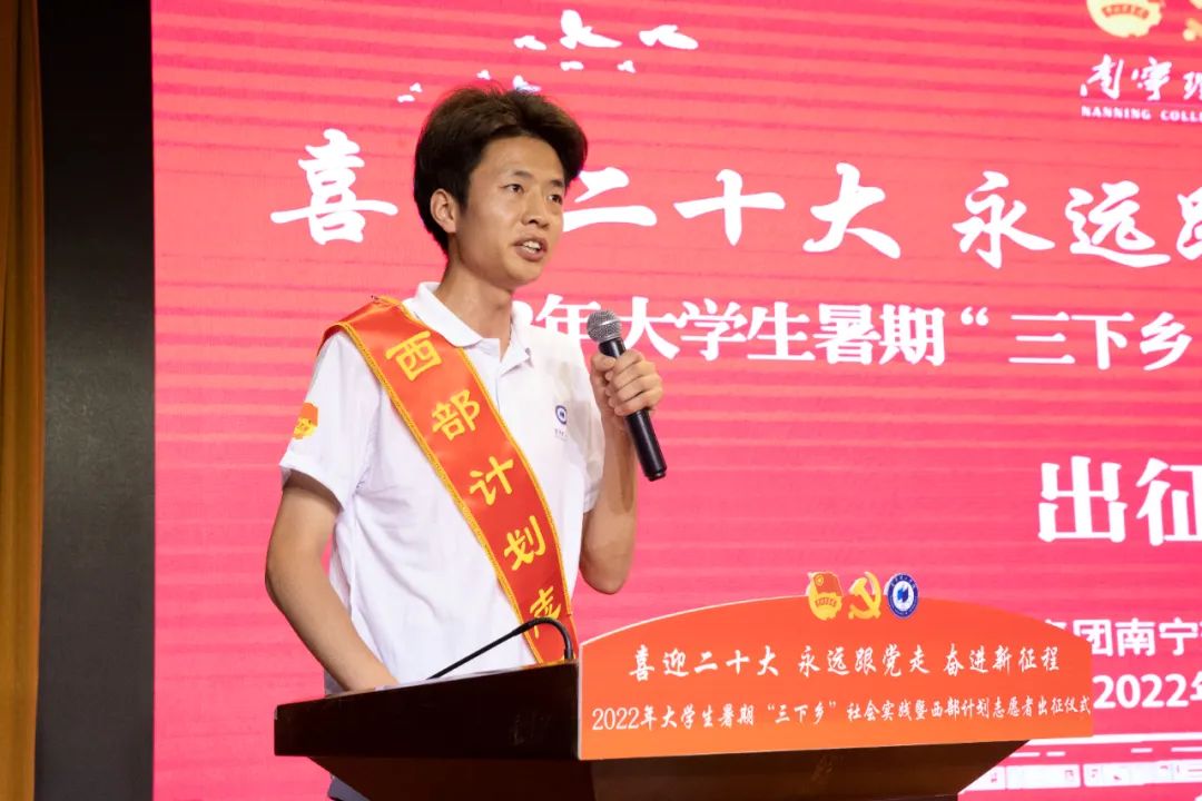 此次出征仪式的顺利举行,拉开了我校2022年暑期“三下乡”社会实践活动和西部计划志愿者出征的序幕。我校将结合实际,利用暑期组织广大师生走出校园,投身社会实践,用实际行动彰显南理青年的责任与担当。出征的号角已经吹响,我们要撸起袖子加油干!让热忱在实践中彰显,让青春风采在热血里挥洒!