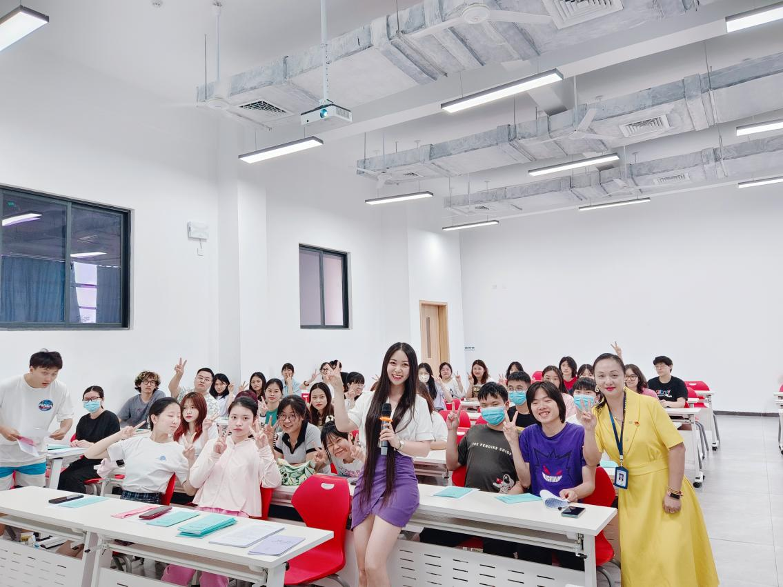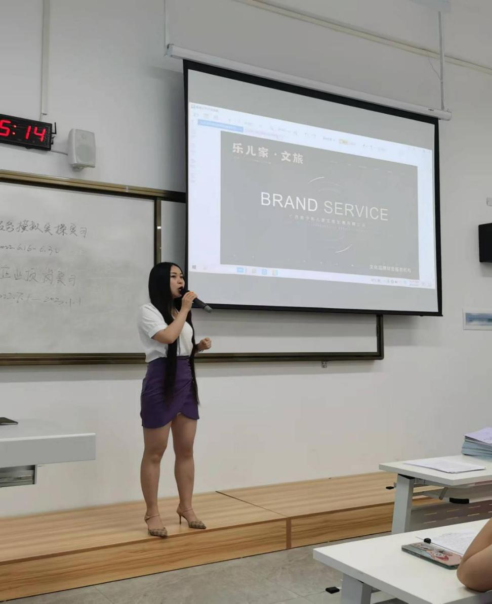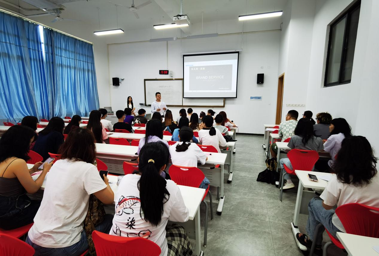 随后乐儿家文旅创始人王英莉开始个人分享,不仅是全国乡村文化和旅游能人,还是海南文化创意研究院智库专家、广西桂平荆山人家荆宿联合创始人、广西好物首席选品官的她详细介绍了公司的企业文化、发展历程、发展趋势、公司的运营理念、品牌文化综合服务项目:品牌(文创文旅IP)设计、活动策划及大会承办、新媒体代运营及推广、直播培训教学等相关内容。在互动环节,针对同学们较为关心的岗位需求、员工待遇和福利、住宿工作环境等问题进行一一解答。