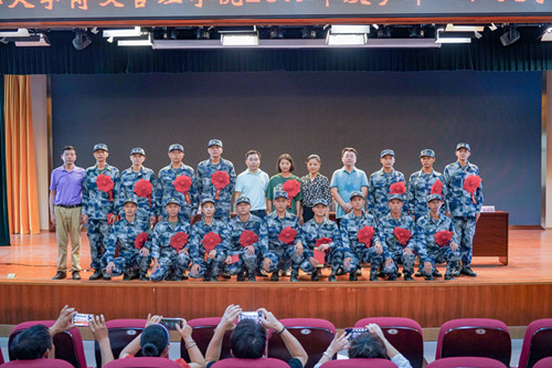 随后,校党委书记金飞为2019年入伍大学生新兵发放了纪念品并与学生逐一合影,入伍新兵代表表决心。