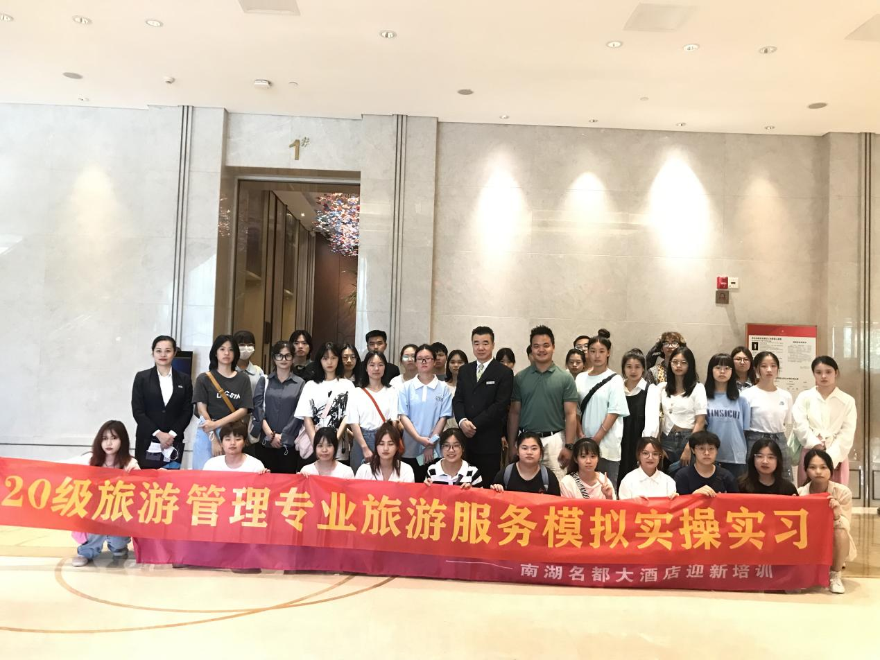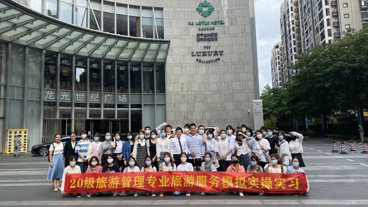 6月17日-24日,商学院旅游管理教研室组织2020旅游管理专业学生前往南宁龙光那莲豪华精选酒店、南国乡村综合旅游景区、南湖名都大酒店进行旅游服务模拟实操实习。