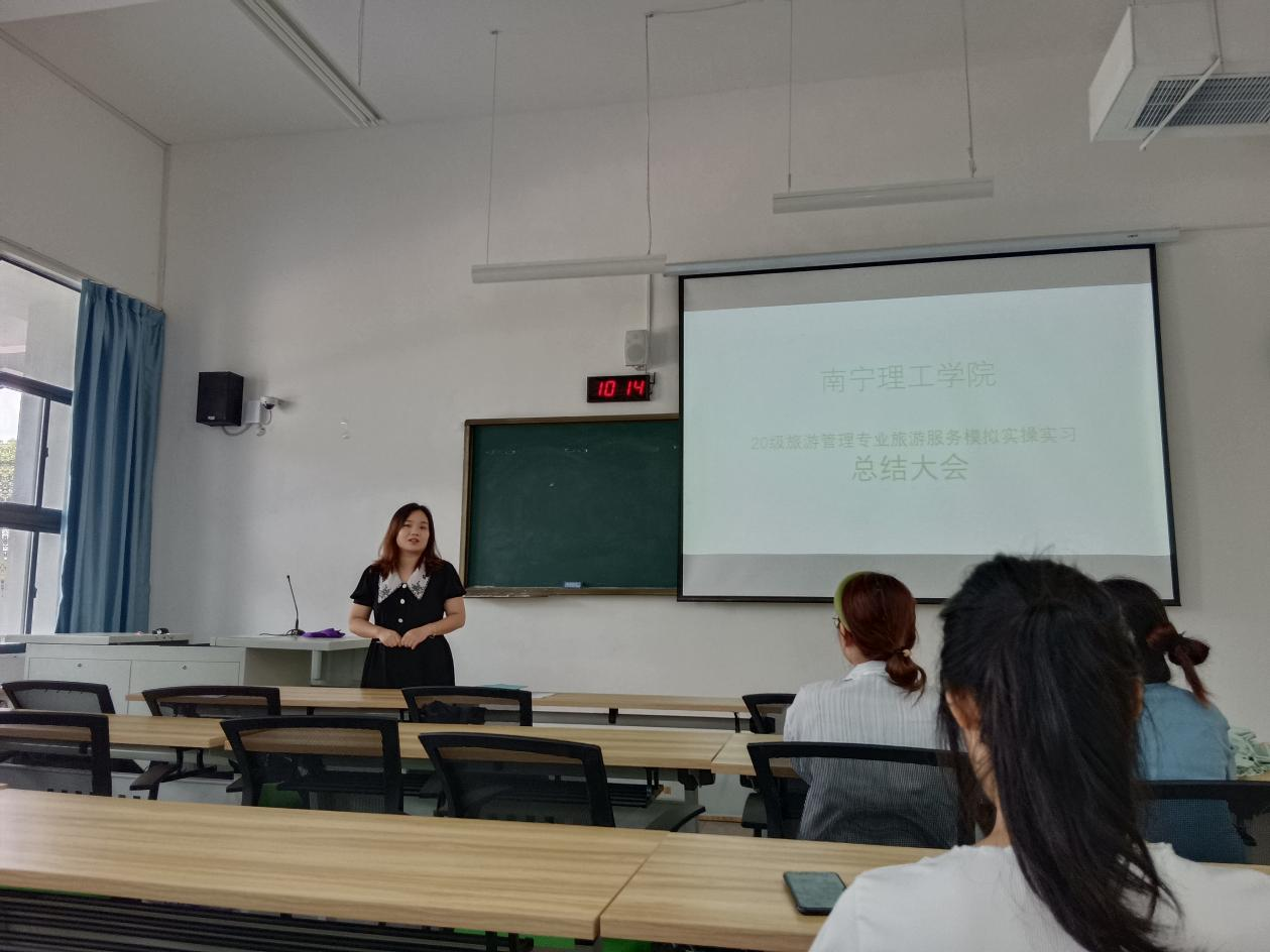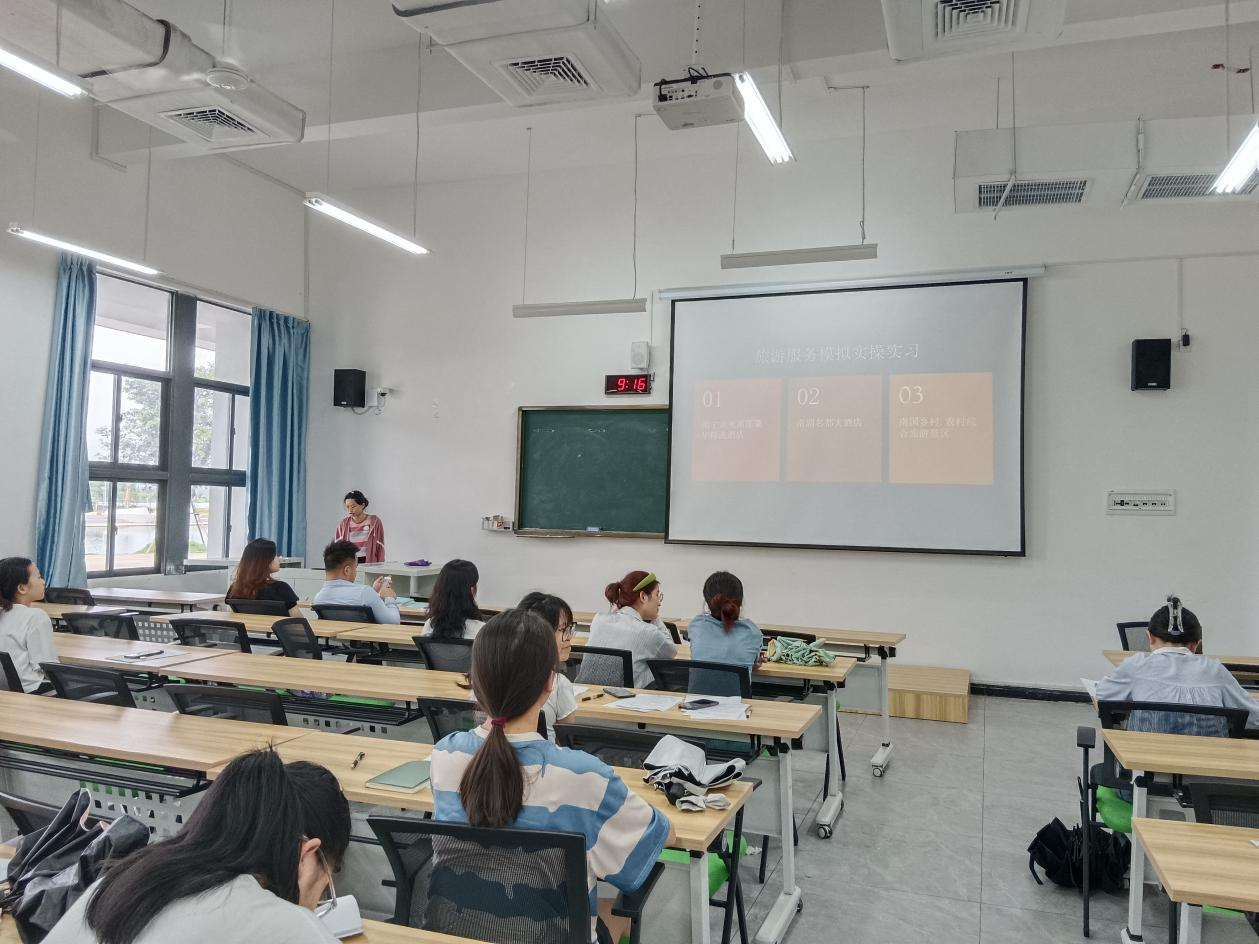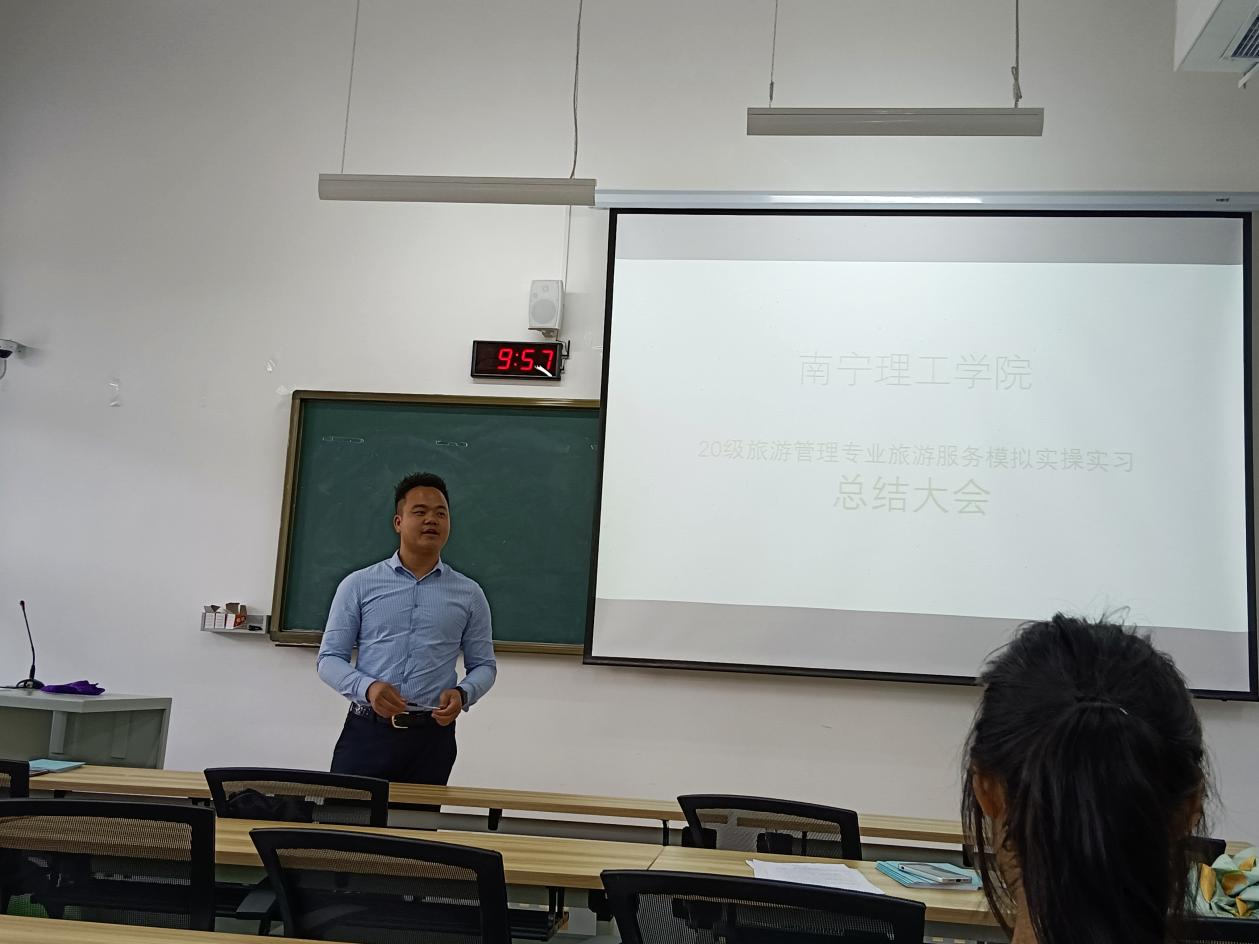 6月30日在东盟校区A4102教室开展20级旅游管理专业旅游服务模拟实操实习总结大会。本次大会由旅游教研室老师钟俊光主持,旅游教研室梁淑媚老师以及旅游管理专业2001班全体同学参加。