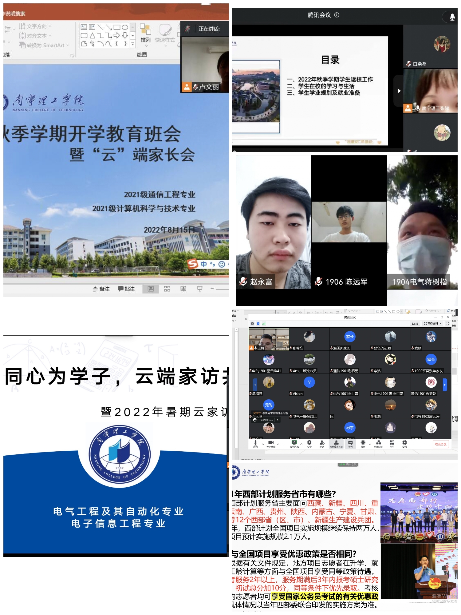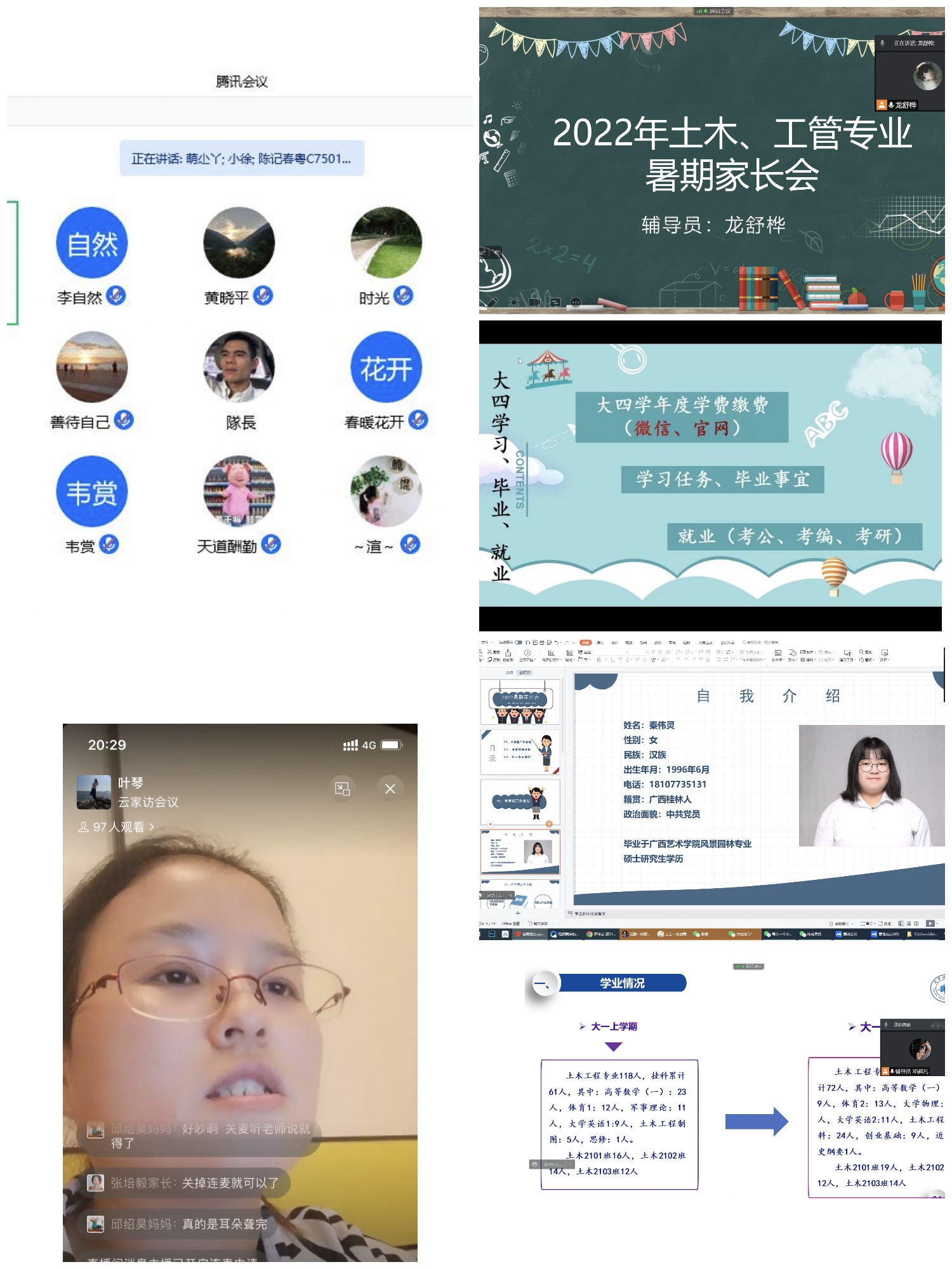 此次活动是我校家校共育工作内容之一,以“家校同心为学子,“云”端家访共成长”为主题,主要利用家校联系微信群,腾讯会议、钉钉班群等视频会议形式与学生家长进行深入交流与沟通。活动中,各二级学院及辅导员围绕暑期安全、在校成绩、课外生活、疫情防控等方面与不同专业、不同年级、不同地区的学生及家长话家常、聊学习、问生活,同时,还就家长提出的考研、就业等基本工作疑问做了详细回答,活动开展效果明显、反响良好。