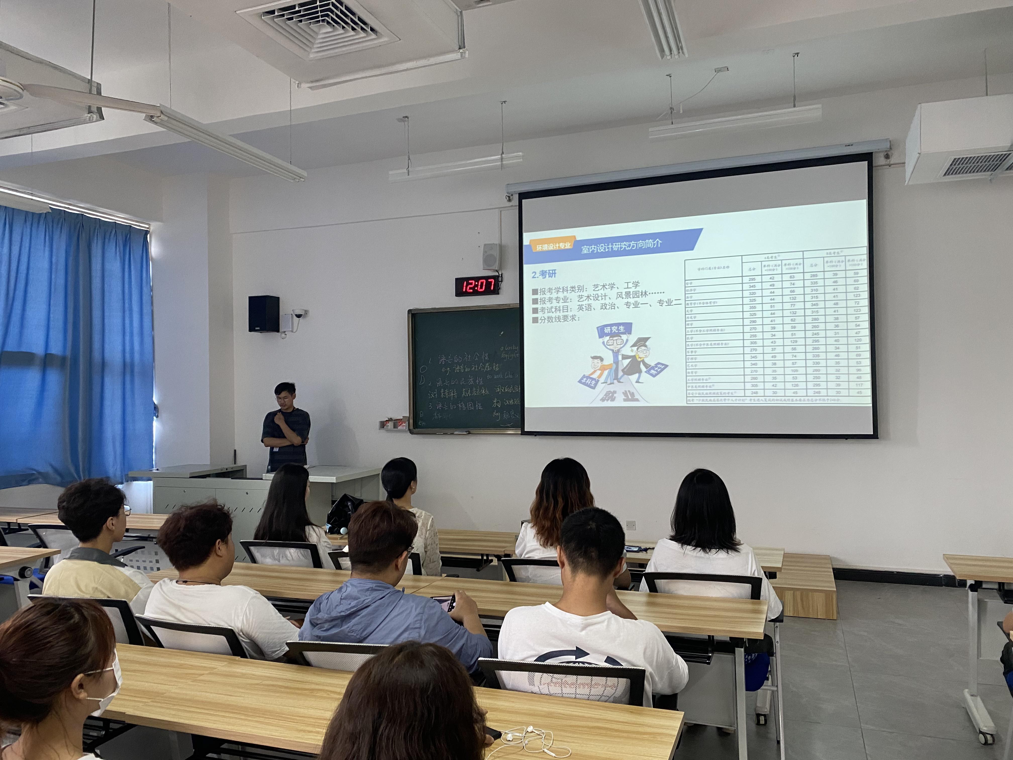 2022年9月9日中午,南宁理工学院艺术与传媒学院环境设计专业在A4202教室召开了新生见面会,参加本次会议的有位于南宁东盟校区的环境设计专业教师:覃保翔,周文婷,王宏亮,姚馨男,袁佳琪,支芙蓉,谢韵以及环境设计专业全体新生。