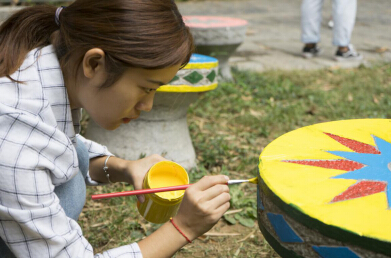 本次活动,我院学生们共完成园区200多个的石桌、石凳绘制工作,学生们的创意十足、生动有趣的作品,得到了桂林广维文华旅游文化产业有限公司领导们高度肯定和赞扬。