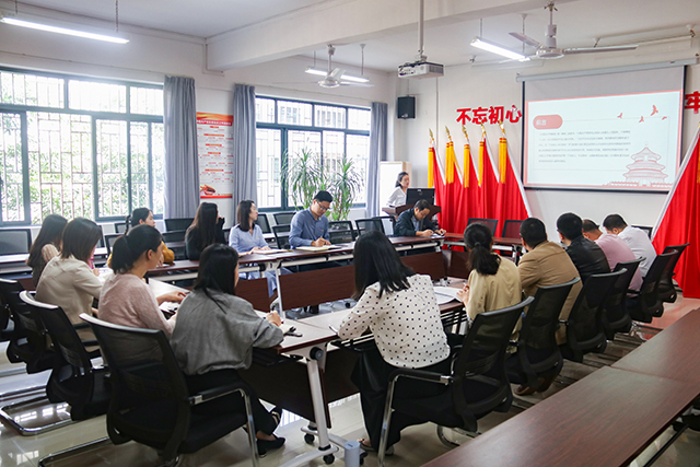 10月21日上午,我校机关第一党支部在新时代讲习所开展以“不忘初心、担当作为”为主题的党课。机关第一党支部党员参加,支部书记主持。