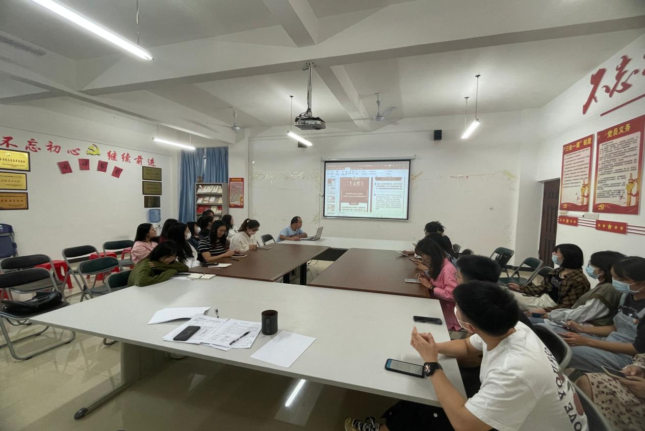 为使我校学生党员进一步深入学习党的二十大精神,深刻领悟习近平总书记讲话的重大意义,商学院学生第五党支部于10月18日在1410办公室召开学习贯彻习近平总书记党的二十大重要讲话精神大会。会议由商学院学生第五党支部书记谢启禧同志主持。