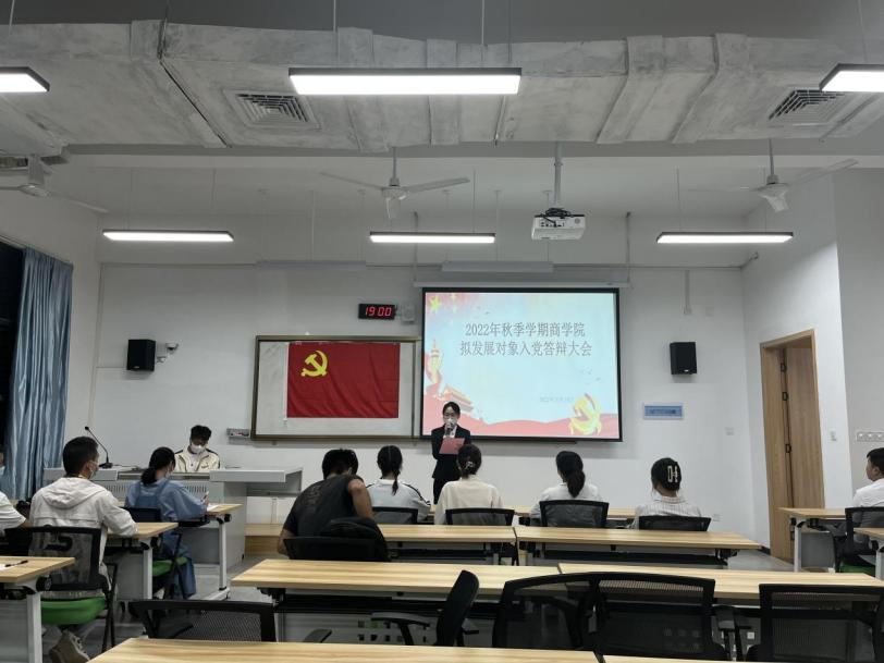 为进一步加强党员队伍建设,为党组织输送更多新鲜血液,2022年10月18日晚上,商学院(东盟校区)学生第七党支部积极分子推优入党答辩会在A3402教室召开。会议由李文燕同志主持,出席本次会议的人员有正式党员16名,预备党员2名,以及7位答辩人员。