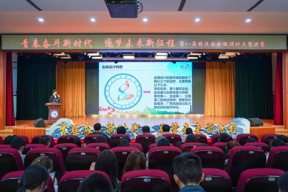 10月24日晚,第八届校运动会会徽设计大赛决赛暨颁奖仪式在一栋报告厅进行。信息工程学院分团委书记,文理学院分团委书记覃,团委老师,土木与工程学院辅导员,建筑与设计学院辅导员徐丽芳参加此次活动并担任大赛评委。