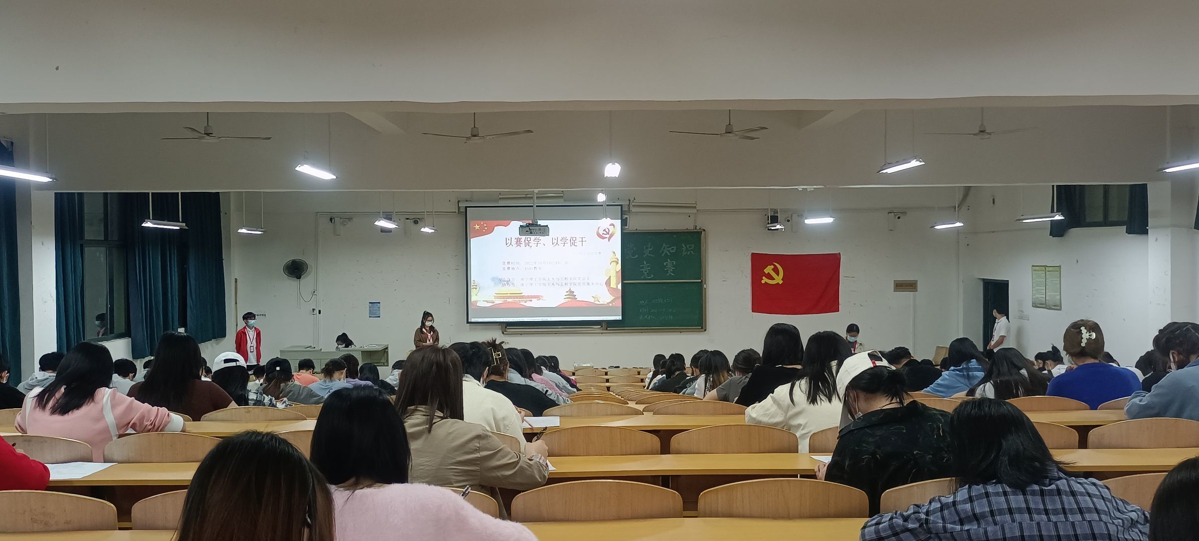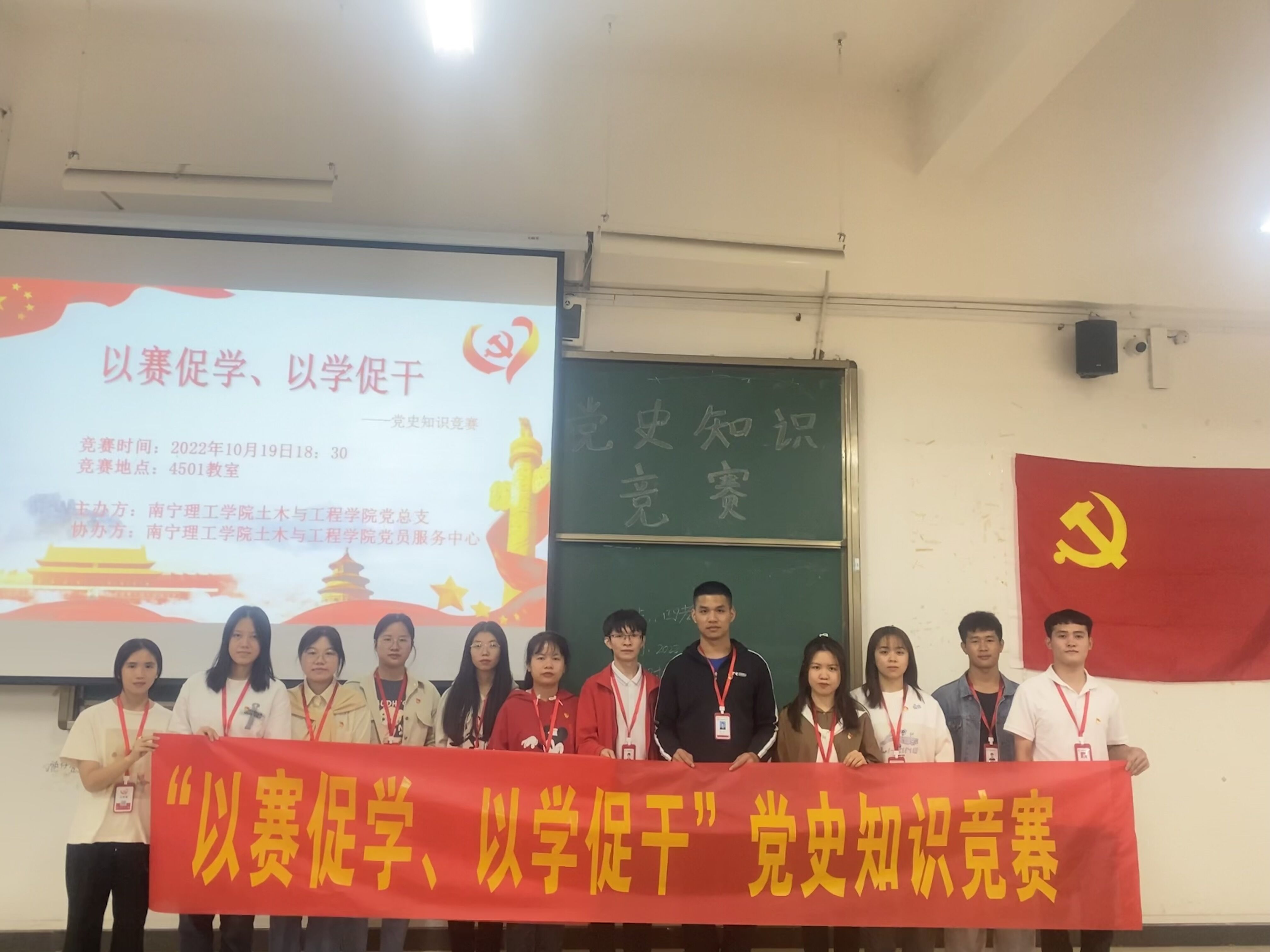 为贯彻落实习近平总书记关于青年工作的重要思想,引导我校青年牢固树立学党史、感党恩、跟党走理想信念,2022年10月19日土木与工程学院党员服务中心在4501教室组织开展“以赛促学、以学促干”党史答题活动。