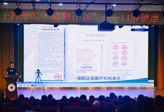 讲座上,杨梓艺医生首先从口腔重要解剖结构、口腔常见疾病及其治疗、口腔卫生保健知识三个方面,解答了同学们备受关注的口腔健康问题。其后,李昊医生为同学们讲述了牙齿的美学标准、影响牙齿美观的常见原因、正确美牙的方法、非正规医疗机构美牙的危害。
