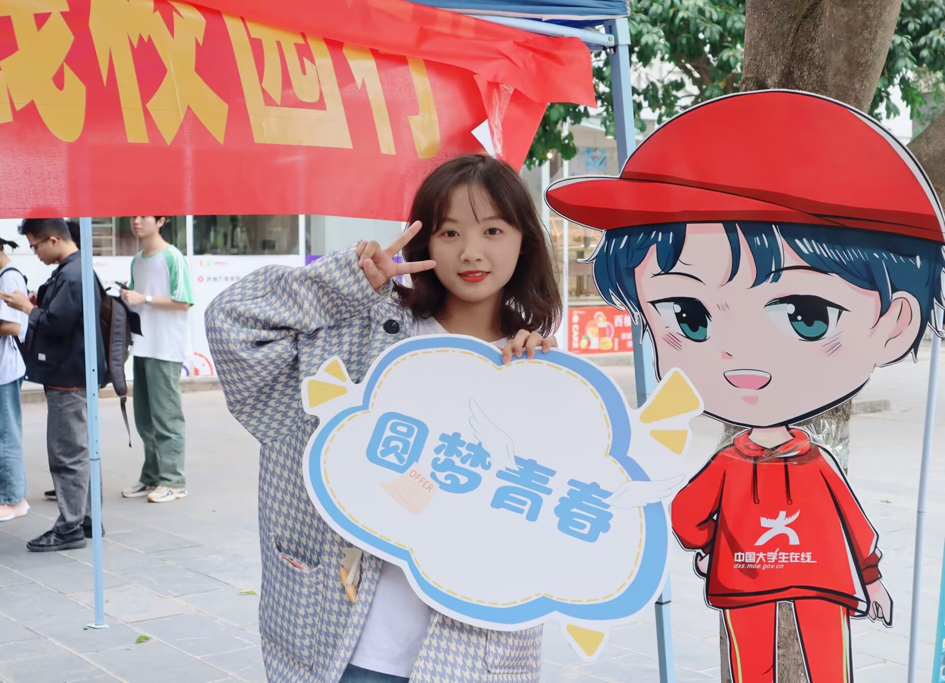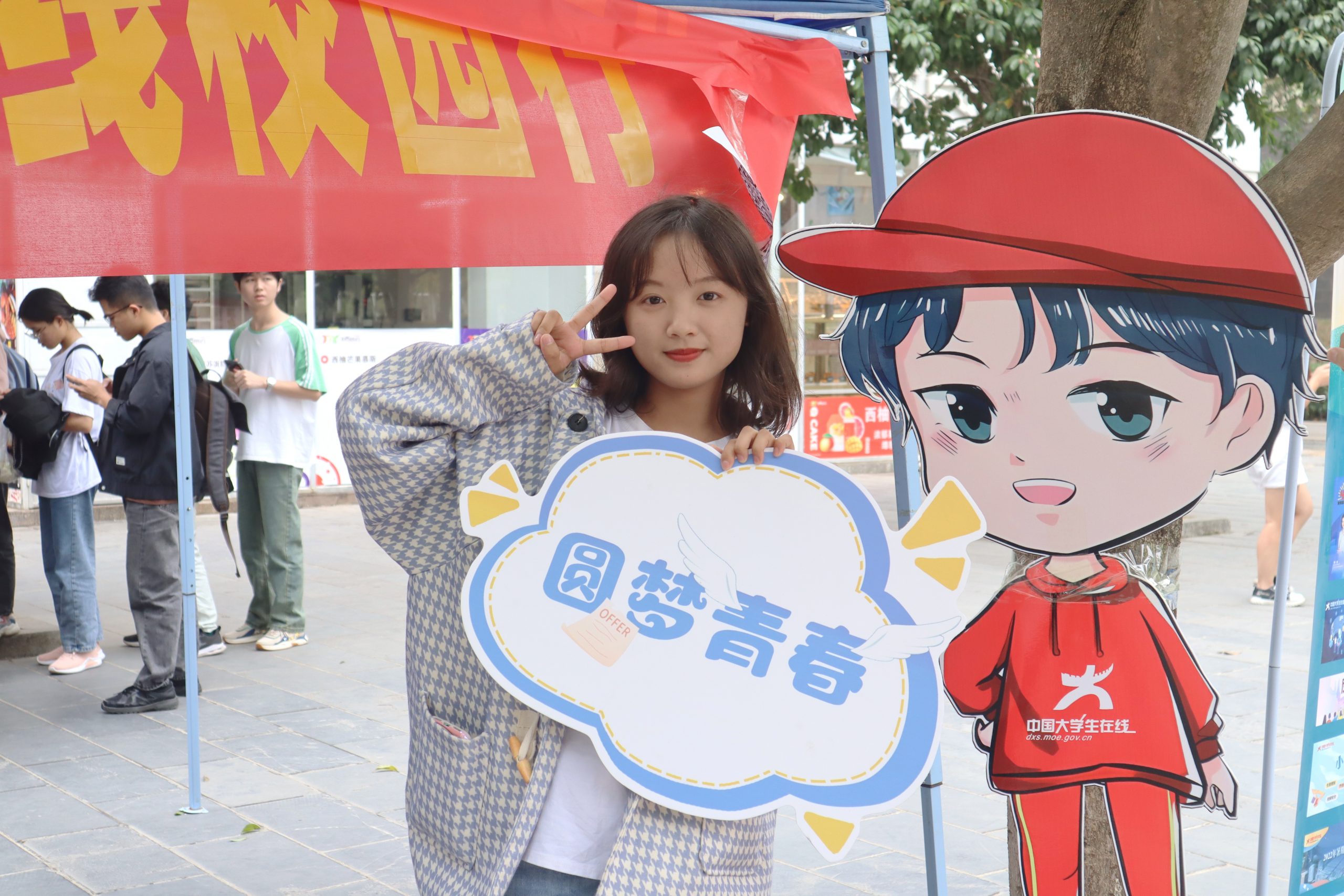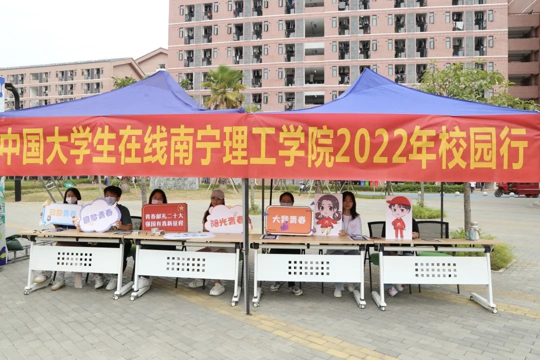 金秋十月,晚枫满园。10月27日上午,中国大学生在线2022校园行巡展于南宁理工学院桂林校区第一食堂前举行。南宁理工学院学生工作助理中心的同学们通过设立宣传点,展示纪念品,现场进行介绍和关注微信公众号的方式,向同学们介绍中国大学生在线平台。