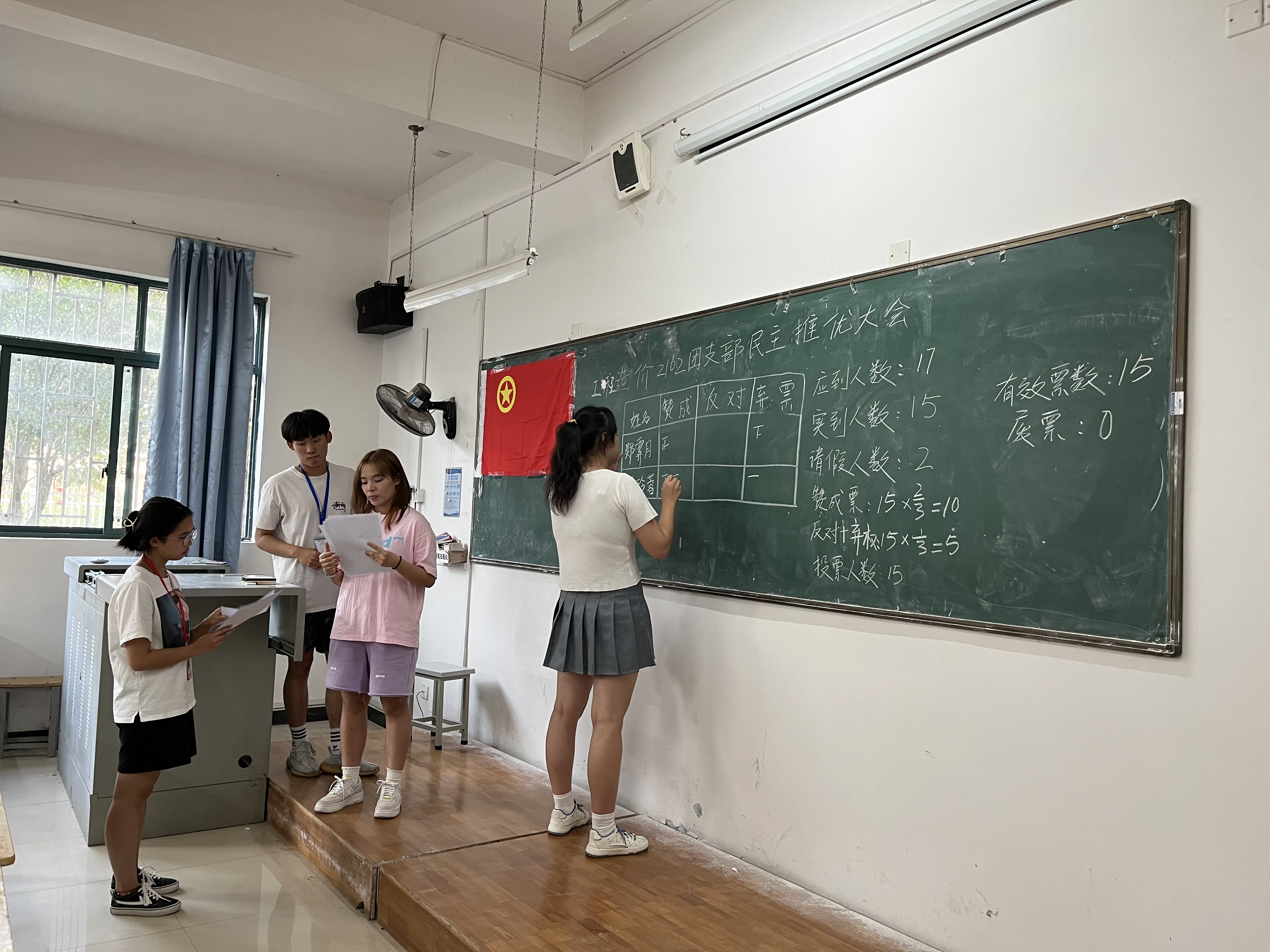 大会上,入党申请人就入党动机、过去一年的学习、工作、获奖情况等依次进行汇报发言。以无记名投票的方式,从入党申请人中选举入党积极分子。投票结束后,各班团支书宣布投票结果并做总结讲话。本次推优共推举了5名同学成为入党积极分子。