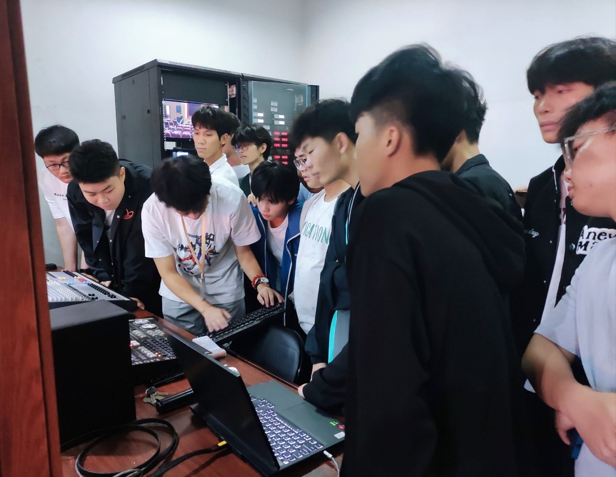 11月10日,《报告厅设备调试教学》在1626报告厅进行。由技术部昌晟一担任主讲。教学内容包括:报告厅舞台幕布使用、场地设备电路开关分布、控制室设备使用和维护。技术部干部组织干事们分为两组,对控制室和后台进行分批讲解,详细地将控制室设备的使用方法和常见故障维护与后台设备的控制方法传授给干事们。随后对PPT的展示、音频的投放和摄像头的控制逐步展开讲解,指出了成员日后在操作设备时可能会遇到的问题以及应对方案。化繁为简,层层递进,让干事们更好的接受、理解知识并实践运用,大大提高了成员的技术能力,为往后使用报告厅设备顺利举办大型活动,奠定了夯实的技术基础。