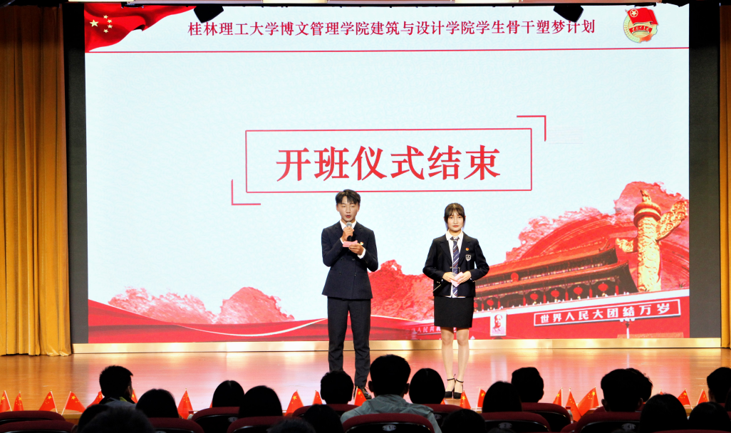 开幕式上,主持人介绍该计划的意义后,在场人员全体起立齐唱共青团团歌。在学生代表张桂鲜宣读培训纪律后,我院分团委书记作为教师代表发表寄语,他表示无论哪一个学生组织都是建设学院重要的一部分,学生干部应明白肩上的重任,同时做好学生中的表率。仪式最后,由我院党总支书记宣布“学生骨干塑梦计划”正式开班。