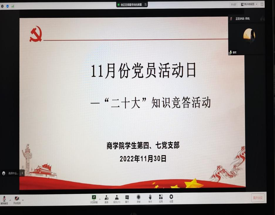 【商院党建】商学院学生第四、七党支部开展“党的二十大 报告知识竞赛”主题党日活动
