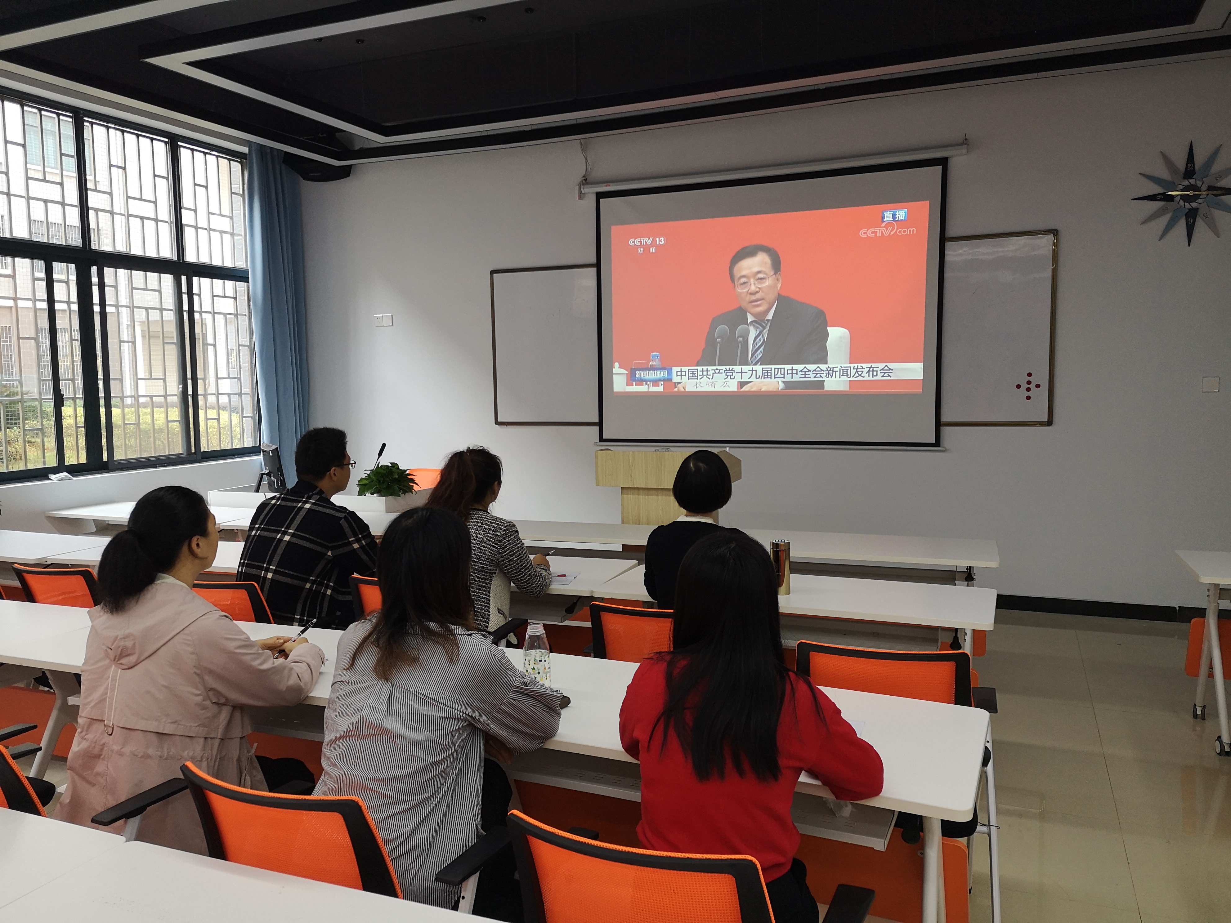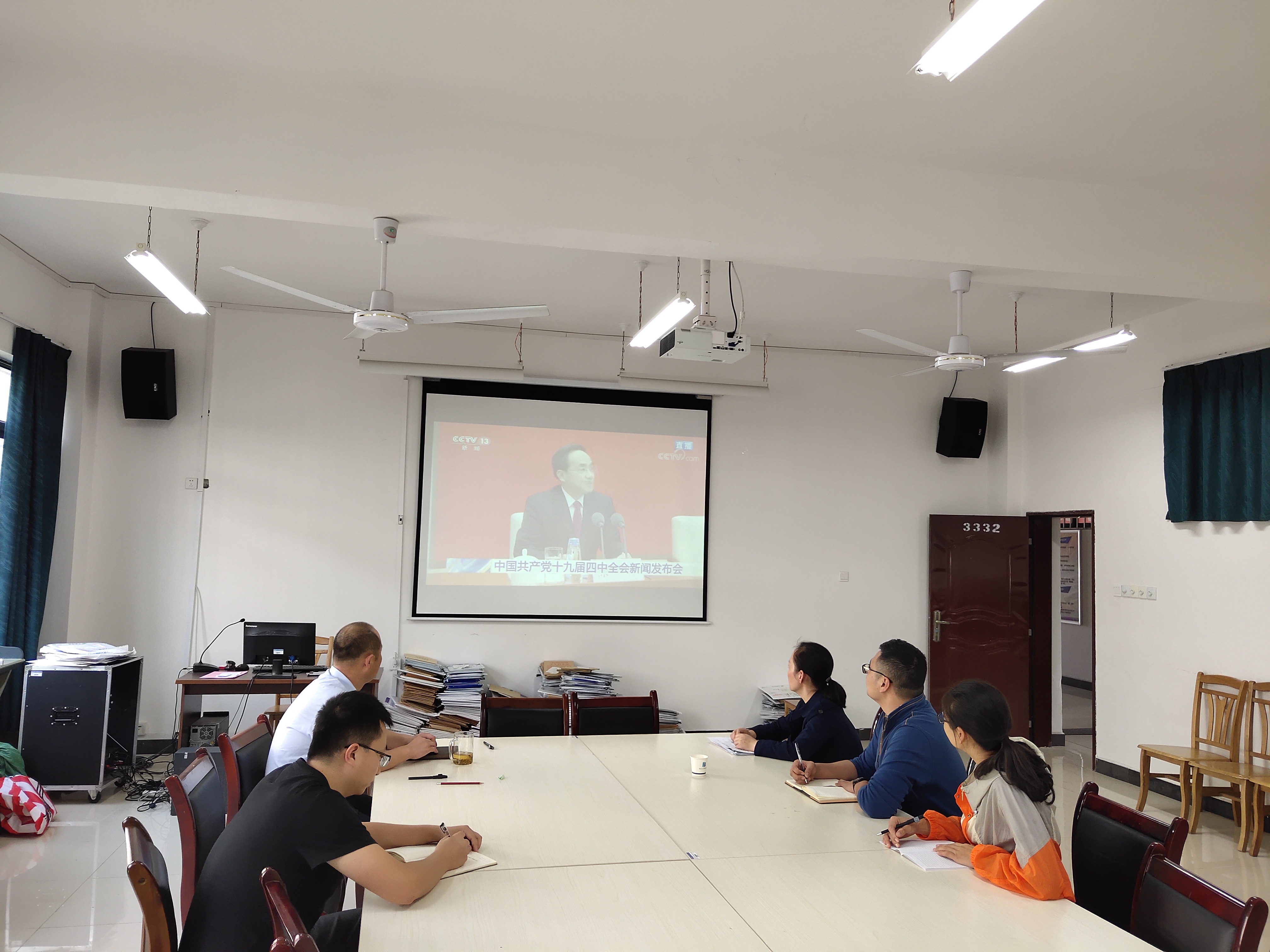 第二党小组党员在3122教室集中观看了中国共产党第十九届四中全会新闻发布会视频。
