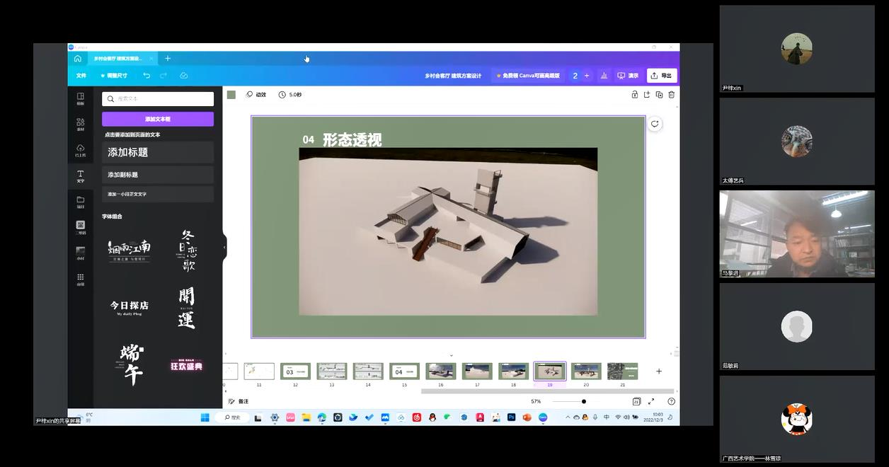 2022年12月03日上午,由我校土木与工程学院承办的“2022泛北部湾高校建筑学联合课程设计教学(竞赛)”复赛以线上汇报与评审的方式进行。来自我校建筑学专业2020级的四支参赛队伍参与了本次复评。