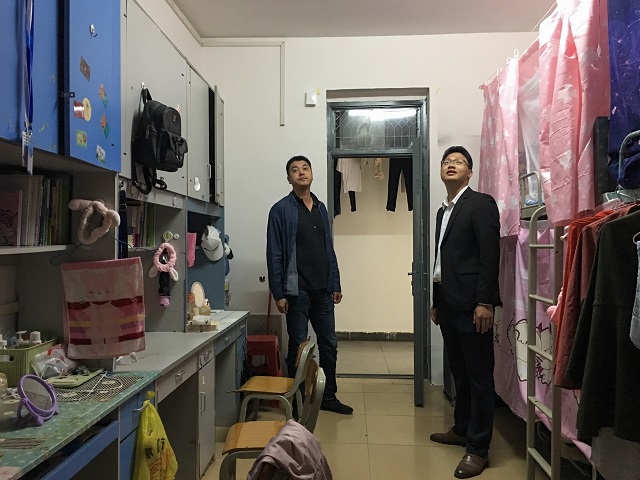 本次检查分为六个小组,主要针对第七栋和第八栋学生公寓进行了大检查。学工处副处长提出了具体工作要求后,各小组人员分头行动,针对各自负责的楼层逐个宿舍走访检查,主要排查了违规电器使用情况及私拉电线、乱接空调电源等存在安全隐患的用电现象,提醒同学们注意用电安全和消防安全,注意通风,同时对于卫生状况较差的宿舍也提出批评教育并要求及时整改。