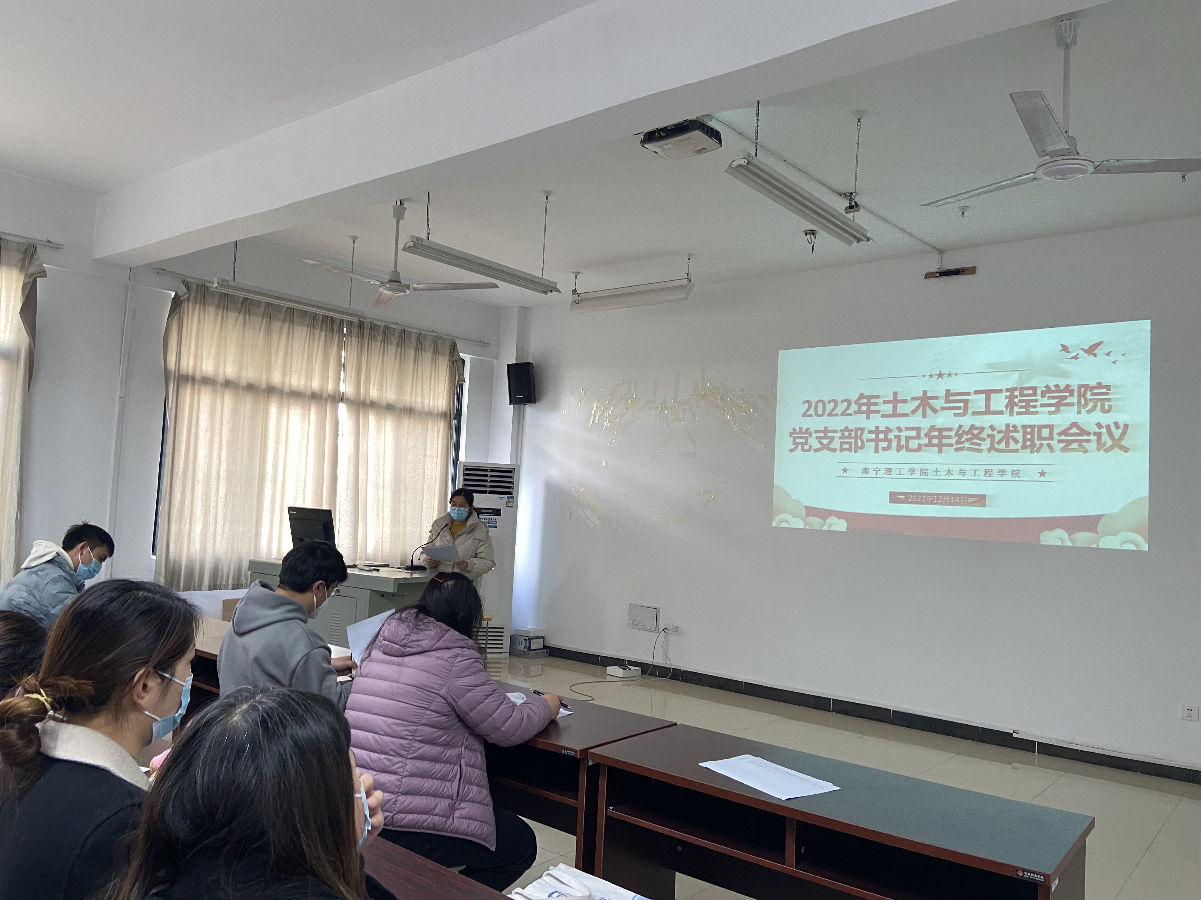 为深入落实党建工作责任制,加强学院党支部书记队伍建设,激励支部书记不断提高政治素质和业务水平,认真履行职责,提高党建科学化水平,12月16日下午,我院在2205举行2022年度党支部书记述职大会。会议由土木与工程学院党总支书记秦磊主持,学院全体支部书记参加本次述职大会。