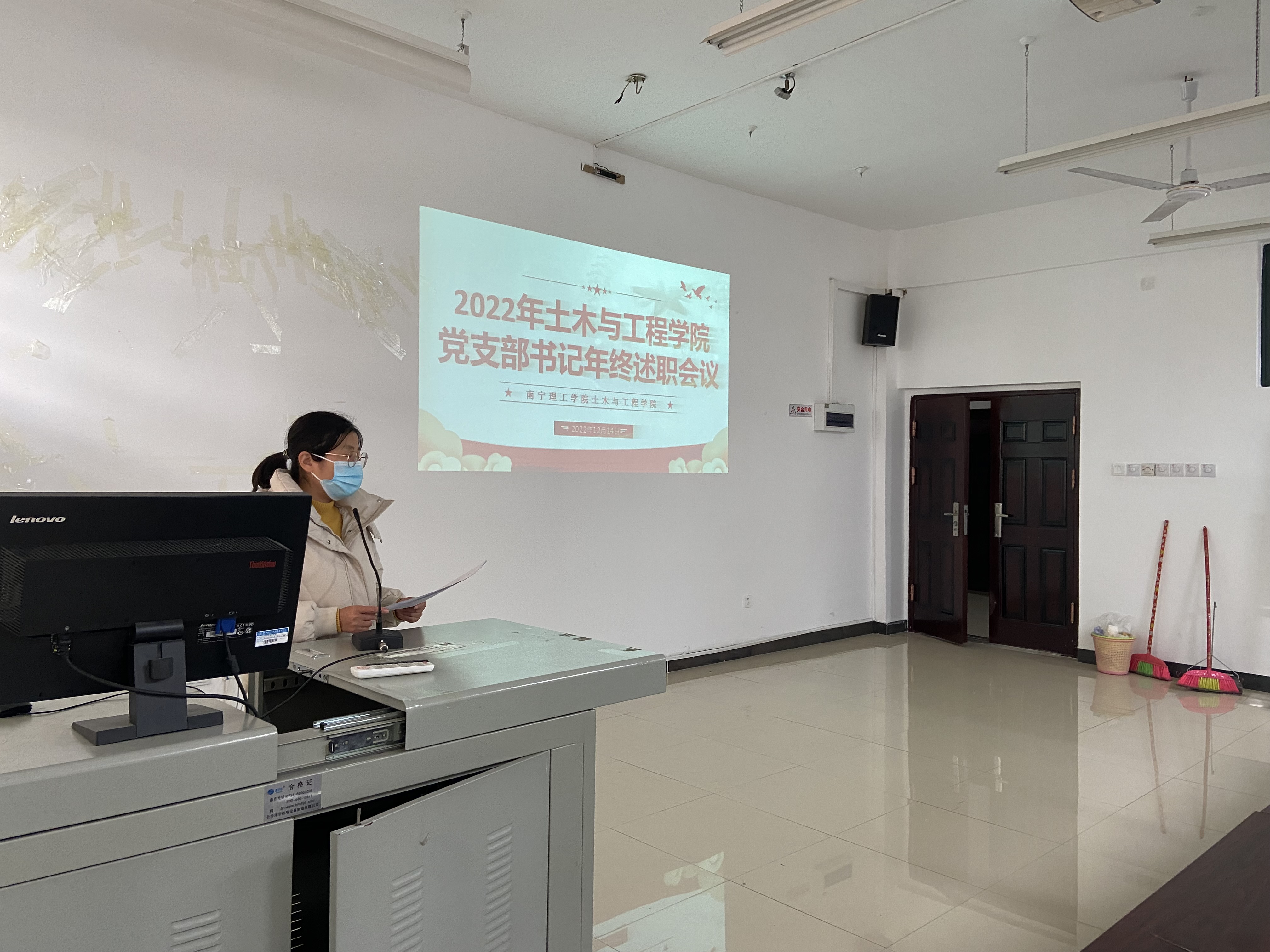 为深入落实党建工作责任制,加强学院党支部书记队伍建设,激励支部书记不断提高政治素质和业务水平,认真履行职责,提高党建科学化水平,12月16日下午,我院在2205举行2022年度党支部书记述职大会。会议由土木与工程学院党总支书记秦磊主持,学院全体支部书记参加本次述职大会。