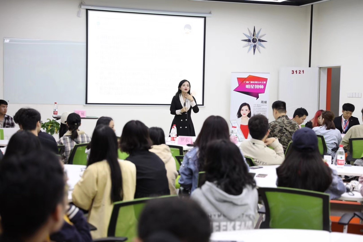 10月25日晚,博文大讲坛第31讲在3121多媒体教室顺利开讲。本次大讲坛有幸邀请到广西广播电视台明星教师周媛进行题为“科学发声与朗诵艺术”主题讲座,广西广播电视台新广传媒副总经理陈冬博,策划部主任罗东,执行部主任文新,学校学工处副处长、团委副书记一同出席培训会,学校大学生艺术团、博文之声电台、演讲协会等学生组织代表50余人参与本次培训。