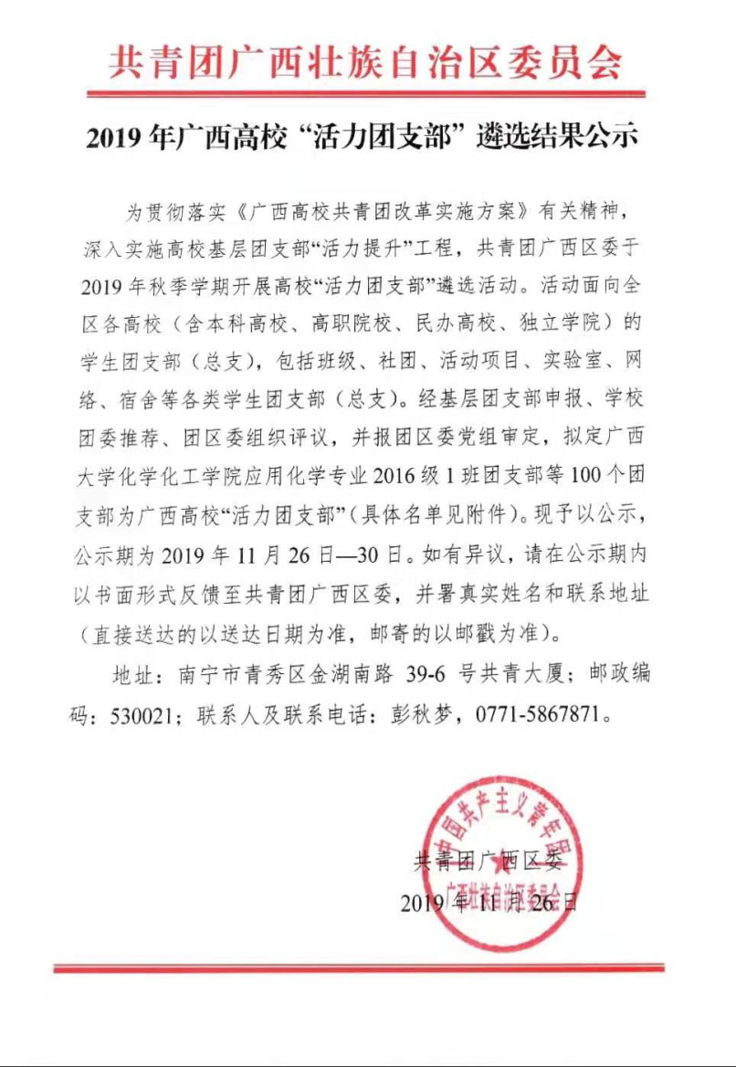 近日,共青团广西壮族自治区委员会发布“关于2019年广西高校‘活力团支部’遴选结果的通报”,我校商学院国际经济与贸易1702团支部被评为2019广西高校“活力团支部”。