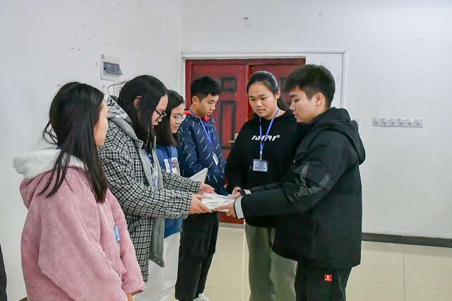 老师为优秀干事颁发小礼品