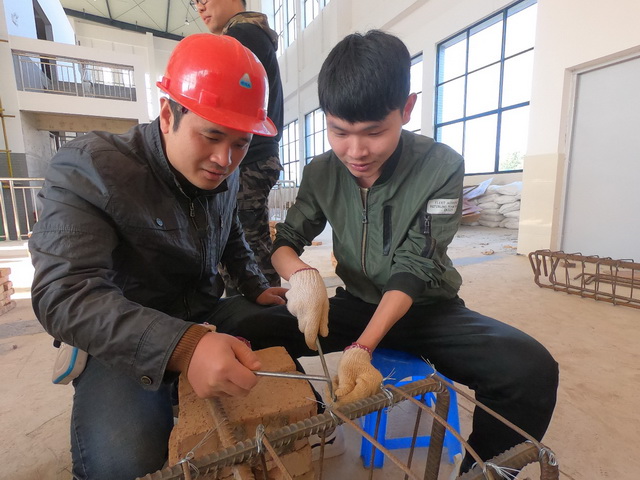 学生认真学习绑扎钢筋