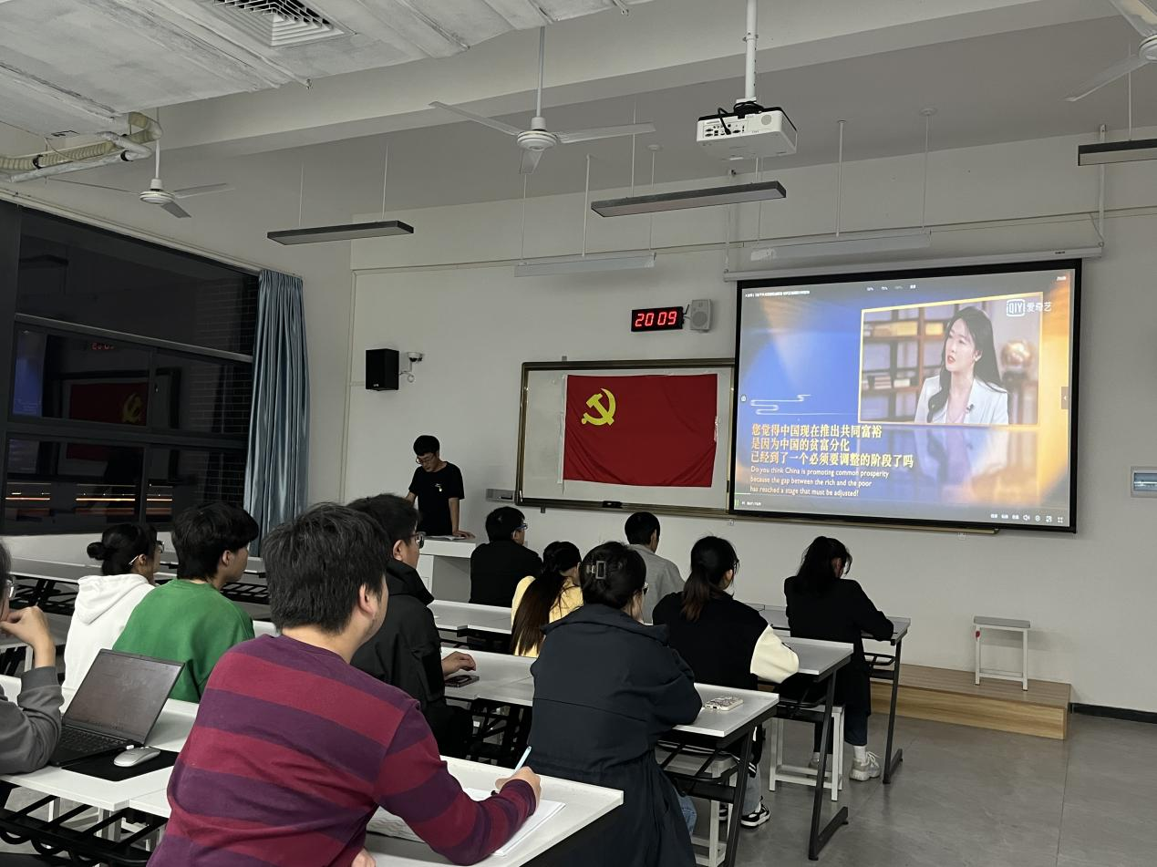 活动伊始,赵玉龙书记带领全体党员同志观看视频:学习全过程人民民主。通过专家的讲解让党员同志们了解什么是全过程人民民主,解读了党的二十大精神。学习习近平外交思想——共同富裕,通过观看访谈视频的形式学习什么是共同富裕,使各位党员们明白共同富裕是不忘初心的一种表现,每一代都需奋斗,为自己为国家,才可实现共同富裕。大会最后,赵玉龙书记对上级党委精神部署要求进行解读,并督促学生党员们要认真学习贯彻党的二十大精神。