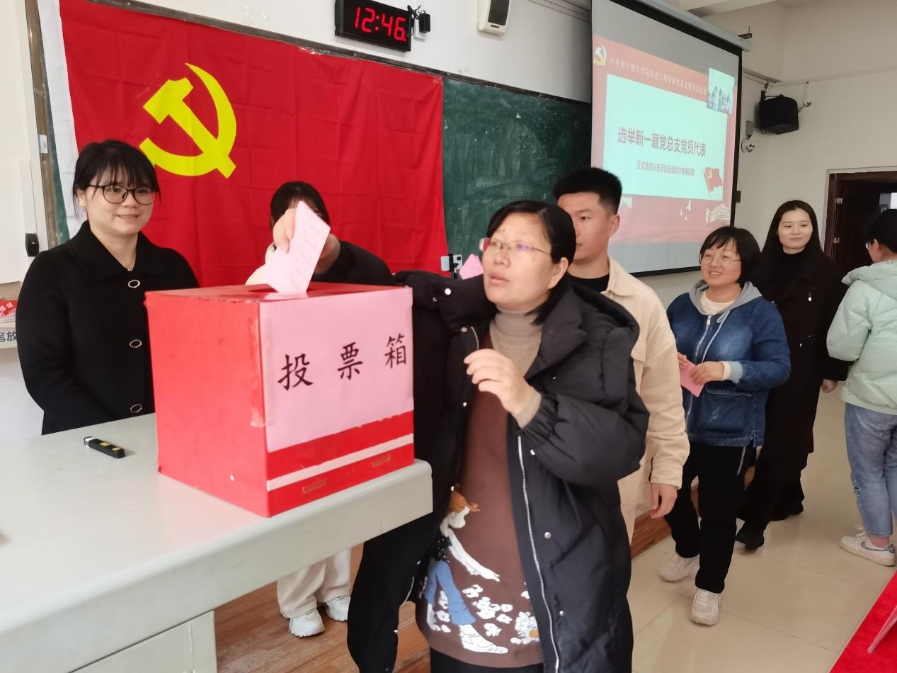 大会第二项议程,选举新一届党总支党员代表。王辉同志宣读了《中共南宁理工学院信息工程学院党总支党员代表选举办法》(草案),参会党员全票通过了此办法。大会表决通过监票人名单、计票人名单、党总支党员代表候选人名单,随后,宣读候选人的基本情况,在监票人的监督下,采用无记名差额投票的方式,选举产生了信息工程学院新一届党总支党员代表,分别是:杨鲜丽、李薇、王辉、高翔、卢文丽、粟方俞、韦夏夏(女、壮族)、韦晓红(女、壮族)、李剑锋、赵曦、赵振文、杨明、黄海慧(女、壮族)。