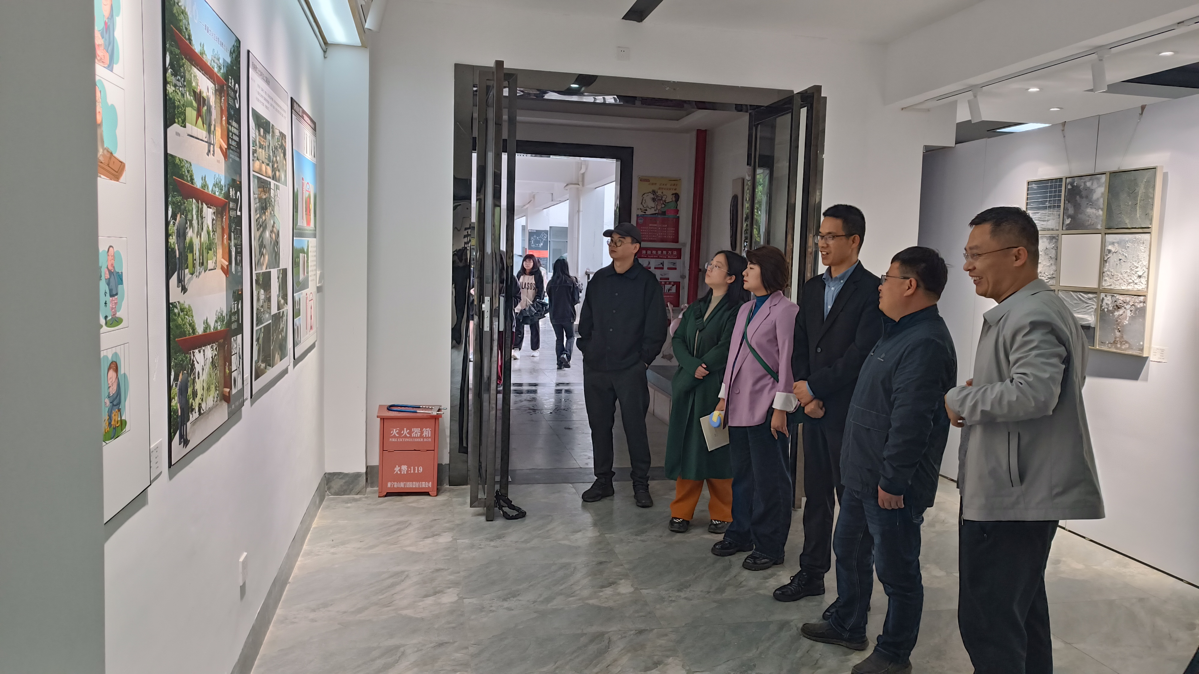最后,在桂林理工大学艺术学院党委委员、副院长符晗、学院院长助理黄建标的陪同下,我院领导、教师代表对桂林理工大学艺术学院实地环境和各专业工作室、实验室、美术馆、展览厅等进行了参观考察,深入了解其学院文化建设、软硬件设施配置及专业实训室建设相关情况。