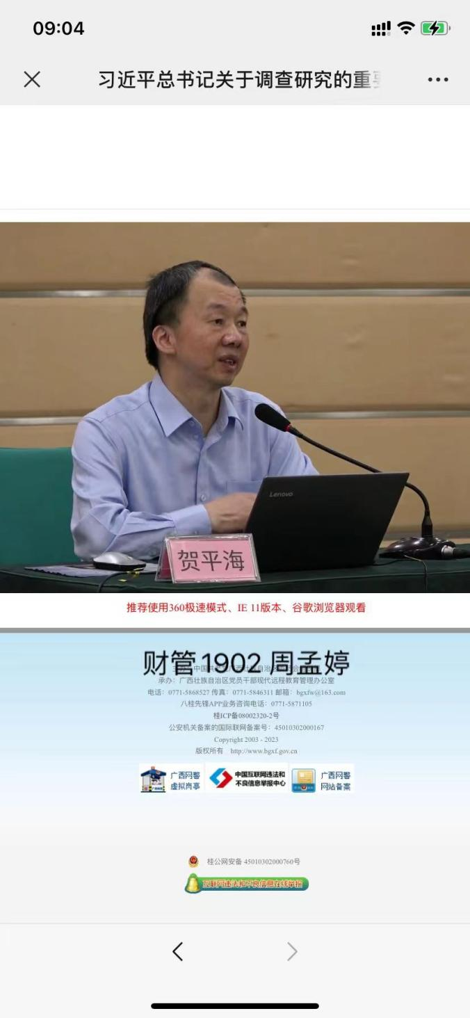 为深入学习贯彻党的二十大精神,全面贯彻落实党中央和自治区关于开展学习贯彻习近平新时代中国特色社会主义思想主题教育工作部署,4月17日,2023年第二场“名家云直播”党课在广西出版传媒集团有限公司二楼多功能厅顺利举行,本次党课由贺平海副教授主讲,党课的主题是“习近平总书记关于调查研究的重要论述与实践”。