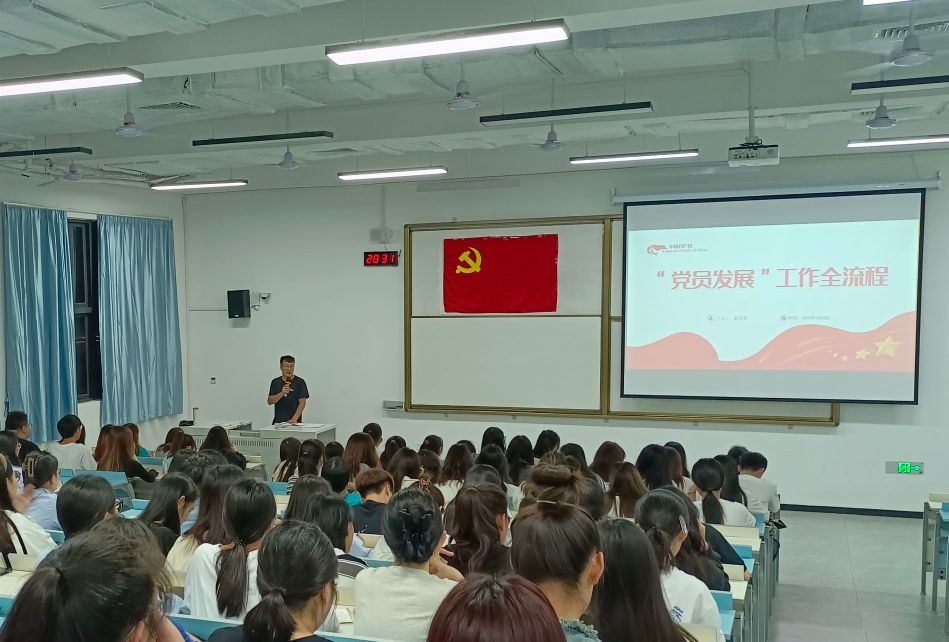 为了切实加强入党积极分子的培养教育,确保发展党员质量。2023年5月9日晚上20点,商学院组织委员赵玉龙老师在A3511教室对第35期全体入党积极分子进行“党员发展流程”培训。