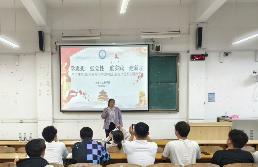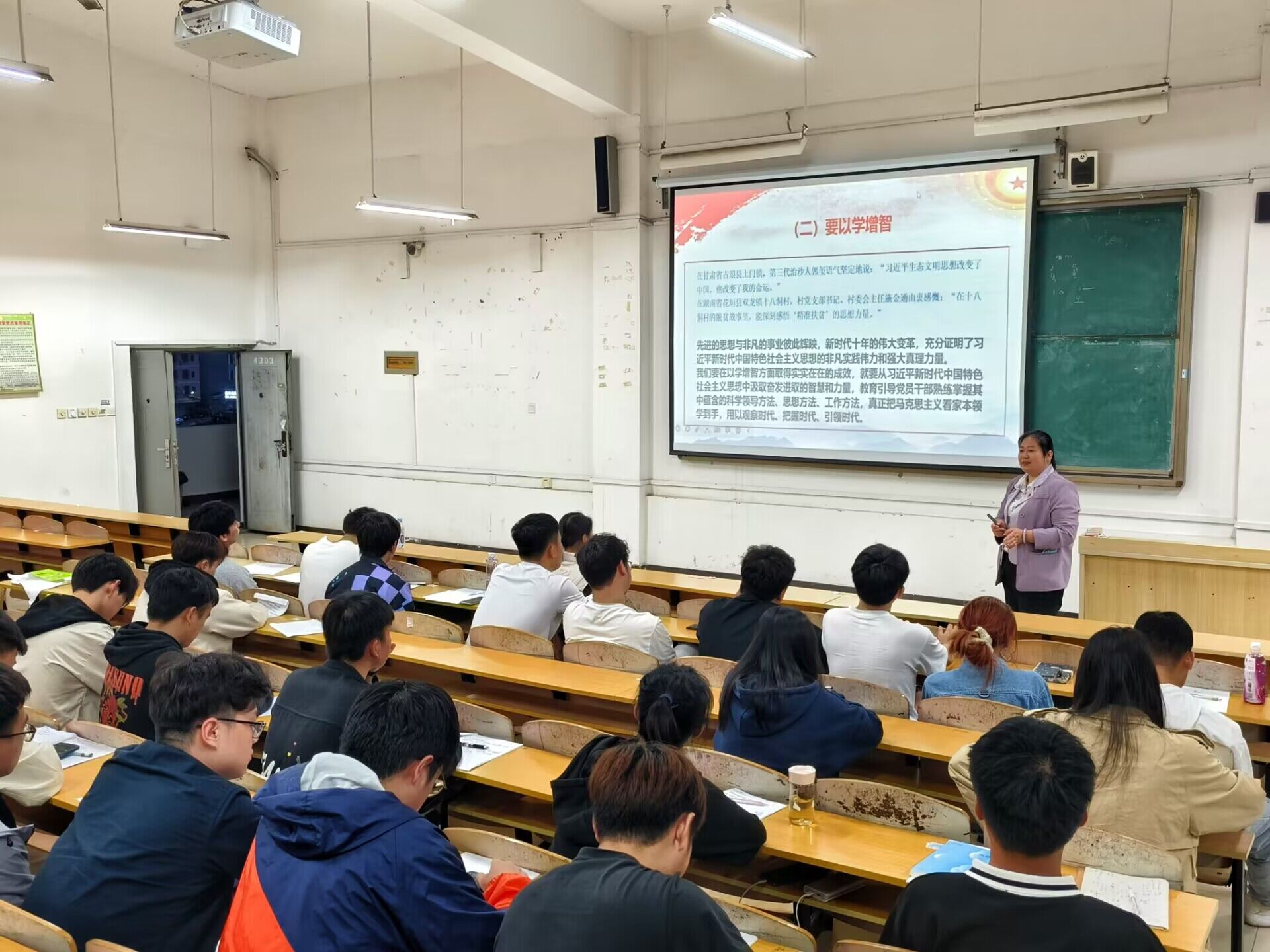 围绕学习贯彻习近平新时代中国特色社会主义思想主题教育,结合我院团学干部实际情况,徐远菁老师从开展2023年主题教育重要意义、总要求、根本任务;习近平新时代中国特色社会主义思想的主要内容;习近平新时代中国特色社会主义思想的鲜明特质以及学习贯彻二十大精神 踔厉奋进新征程四个方面展开授课。要求各位学员真正把马克思主义看家本领学到手,努力在以学铸魂、以学增智、以学正风、以学促干方面取得实实在在的成效。