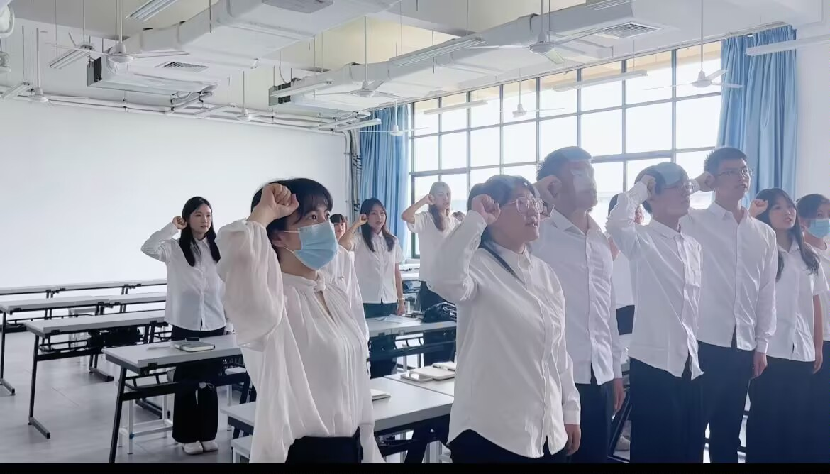 会议开始,全体党员奏唱国歌。覃成嫄等8名预备党员宣读转正申请书,各位预备党员分别从学习,生活、工作、思想中来分析自己在过去一年中获得的进步和仍然存在的不足。随后,党支部介绍了预备党员的培养考察情况。支部正式党员作投票表决,一致同意接收8位预备党员转为正式党员。并举行入党宣誓仪式。最后,艺术与传媒学院学生第二党支部书记张双对此次转正的预备党员提出要求,她表示:希望各位党员同志不断学习,继续进步。
