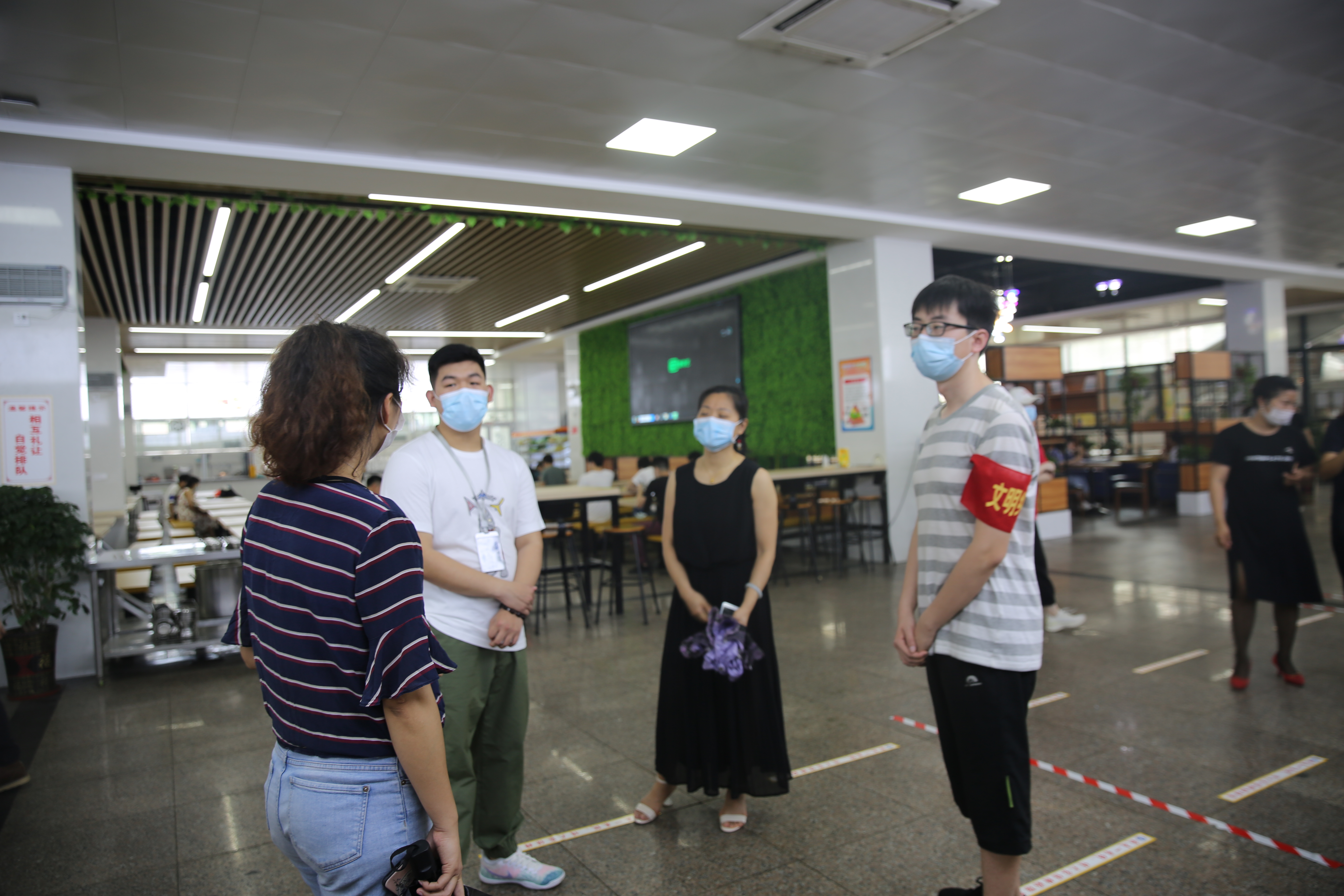 我校迎来了首批学生返校,为坚决打赢“舌尖上的防疫战”,确保后续返校学生放心就餐,我校严格按照相关要求落实用餐制度,并设立食堂监督机制,组织学生志愿者于一号食堂二号食堂开展维持秩序等相关工作,党委副书记邓雪梅、学工处处长到食堂学生了解就餐情况和看望一线志愿者。