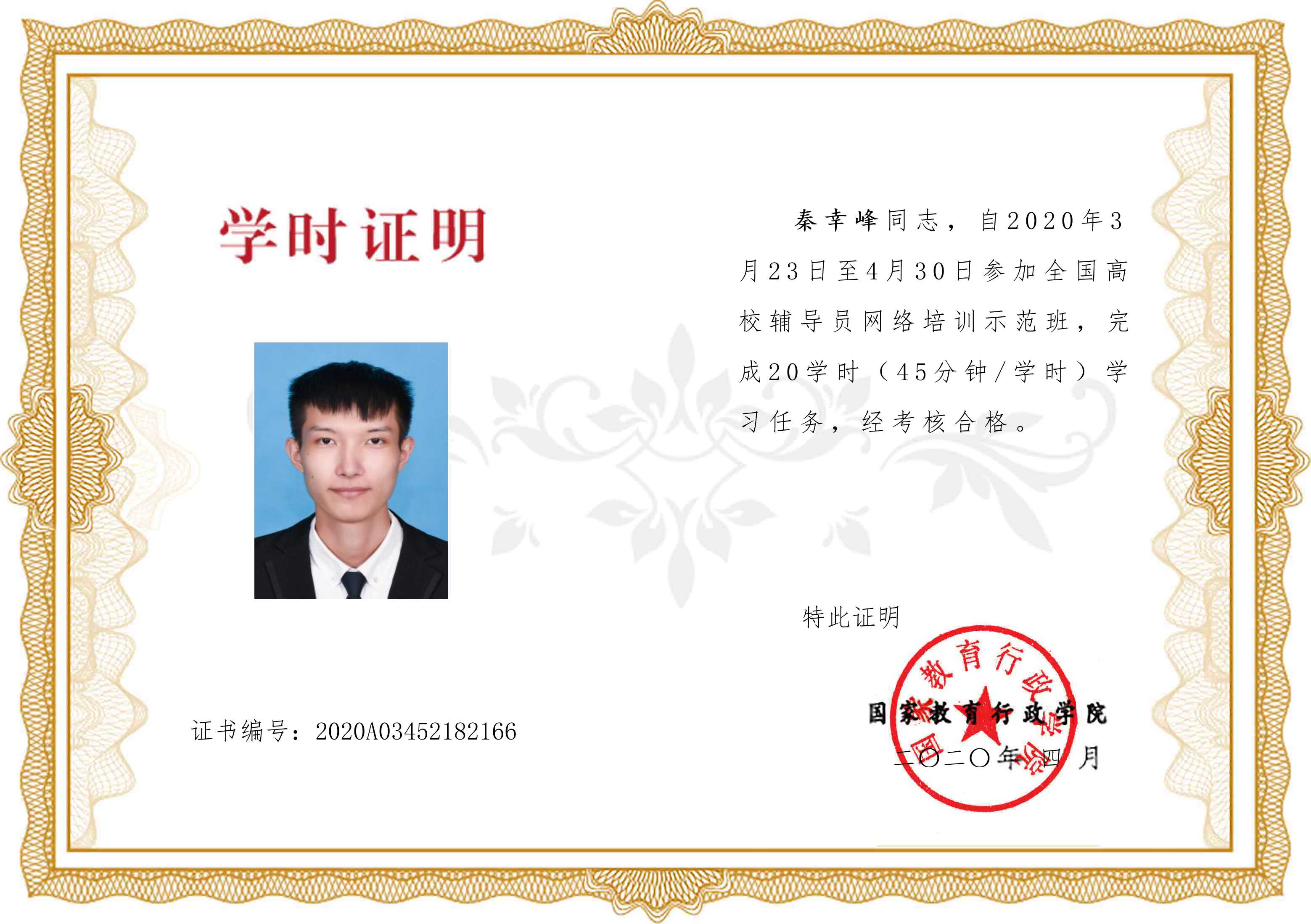 文理学院辅导员 课程学时证明