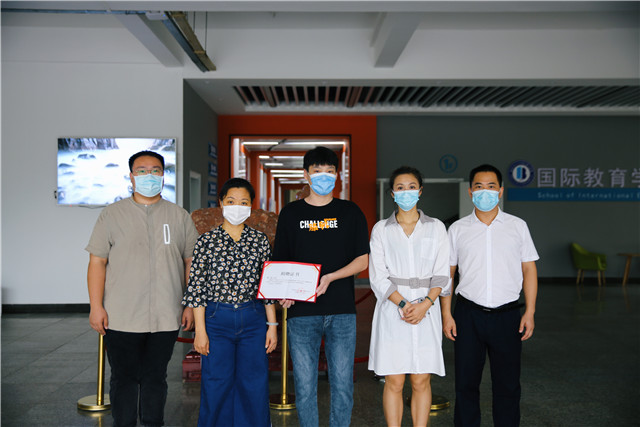5月20日,我校信息工程学院2017级通信工程专业学生李浩向学校捐赠一次性医用口罩2000只。党委副书记邓雪梅代表学校向李浩同学颁发了捐赠证书,并表示由衷感谢。