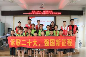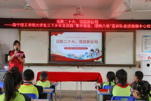 “讴歌二十大,强国新征程”大学生“三下乡”宣讲活动在乡村小学内开展,增强了同学们的爱党爱国情怀。大学生志愿者们用生动的讲述和互动的方式,将党的二十大精神传递给每一位同学,点燃了他们对祖国的热爱之情。通过此次主题宣讲活动,宣讲队成员们认真学习了党的二十大精神,进一步提高了自身的党性修养,更加明确身为新青年所肩负的使命担当,用青春和汗水为实现中华民族伟大复兴的中国梦贡献自己的力量。
