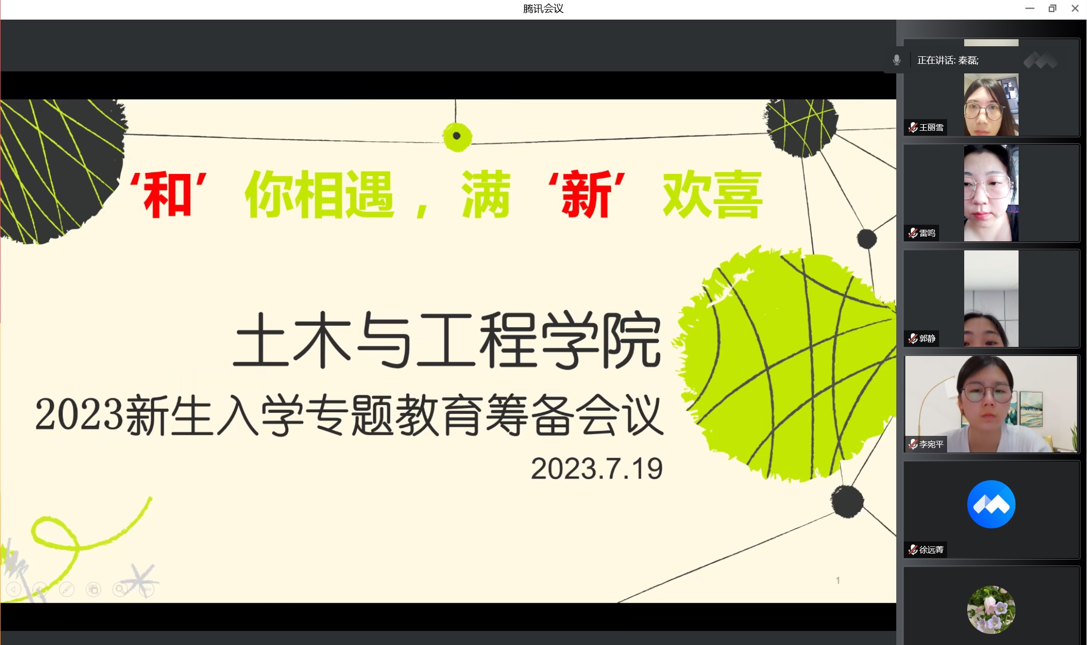 为进一步做好新生入学教育工作,让2023级新生在开学后更好的适应大学的新环境、新生活,我院于7月19日于线上召开新生入学教育筹备会。我院全体辅导员参加会议,本次会议由我院党总支书记秦磊主持。