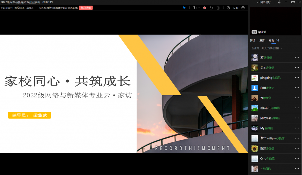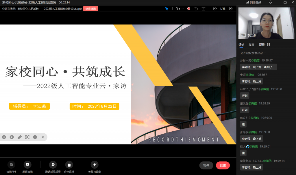 根据学校学工部(处)《2023年暑期学生工作队伍职业能力提升大练兵》的工作要求,为推进家校深度融合,打造家校育人共同体,2023年8月我院辅导员通过企业微信组织开展暑期“云·家访”活动。